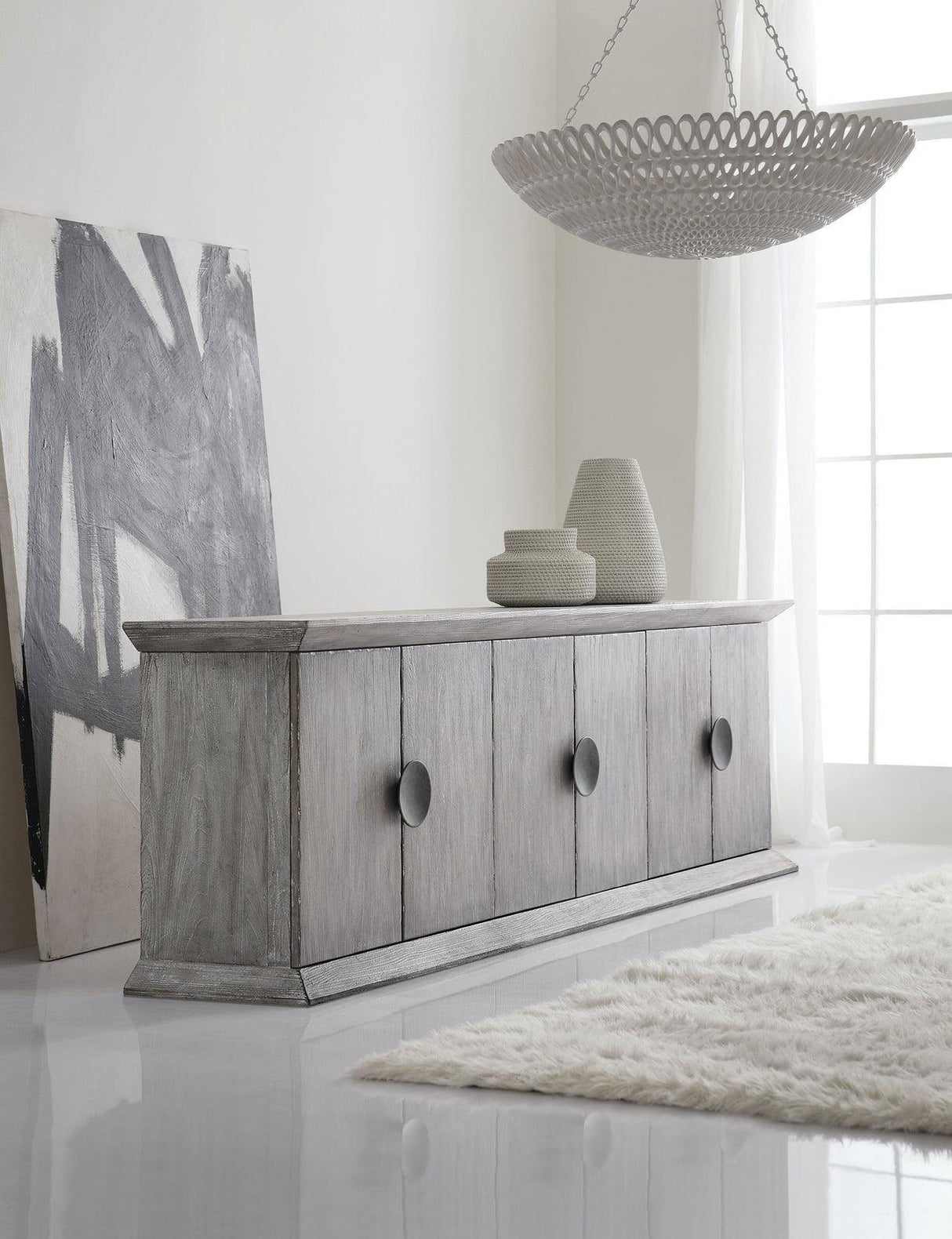 Home Elegance Furniture presenta con orgullo el Credenza Melange Koren con cubierta de hormigón sintético enchapado en olmo gris claro de Hooker Furniture , una incorporación refinada diseñada para realzar su hogar con un estilo atemporal.