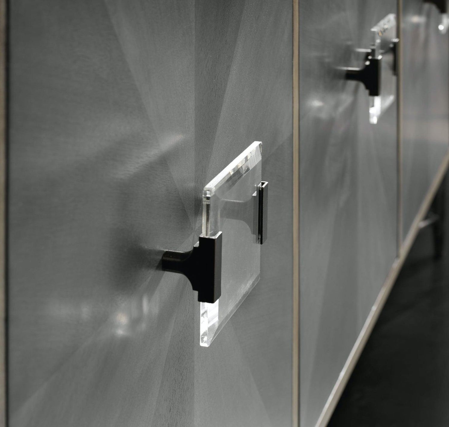 El diseño geométrico gris aporta interés visual moderno a los frentes de las puertas.