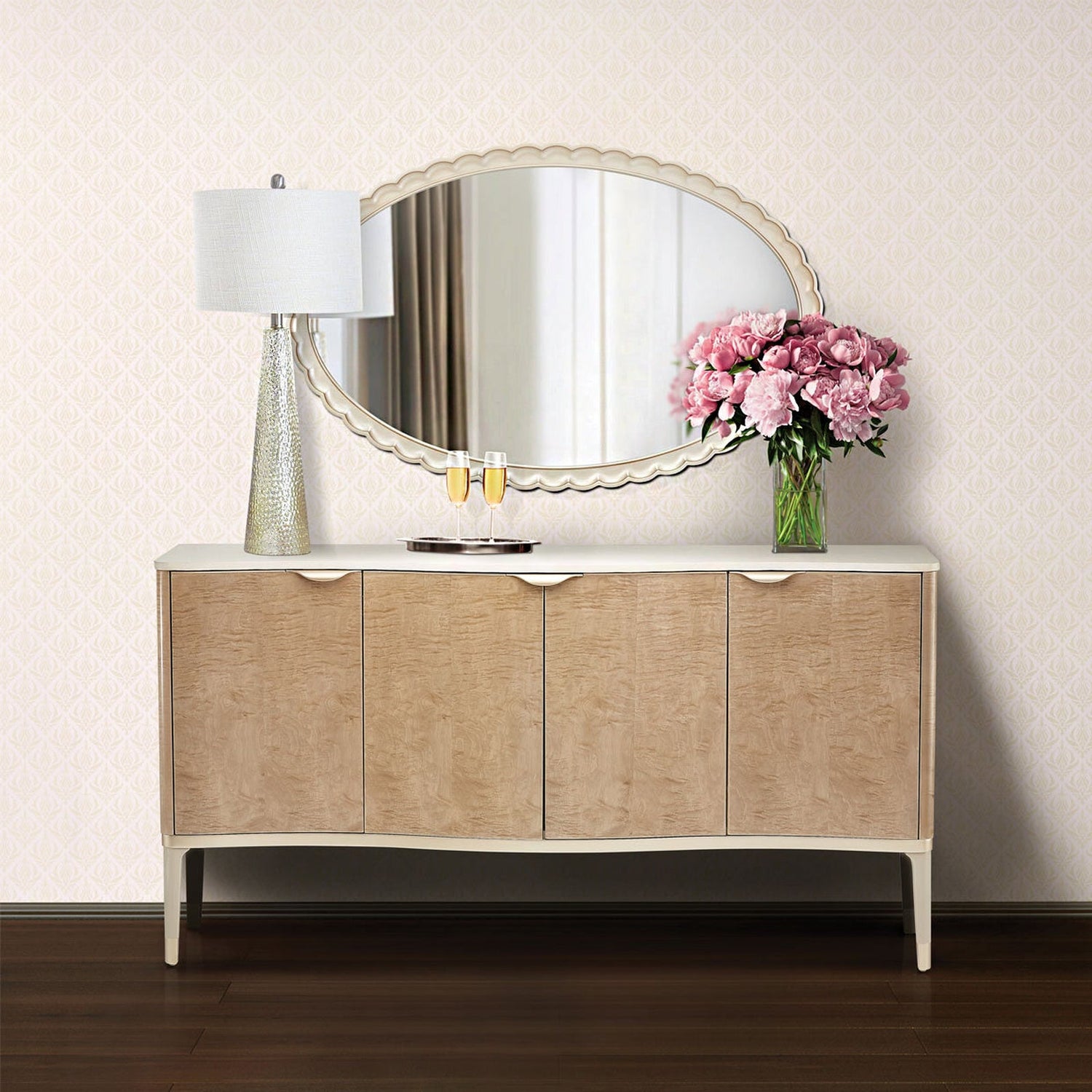 El aparador Malibu Crest es una adición espectacular a cualquier comedor. Con sus cálidos acabados en caramelo y chardonnay, su moderna silueta y su espacioso interior, esta pieza añade un toque de elegancia a su espacio. El aparador cuenta con una magnífica cubierta de mármol cultivado que complementa el diseño general y un cajón para cubiertos forrado en terciopelo para mayor comodidad. Complete el look con el espejo de pared Malibu Crest a juego para crear un comedor refinado y sofisticado.