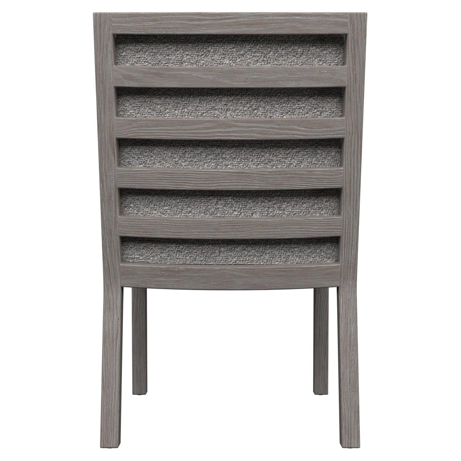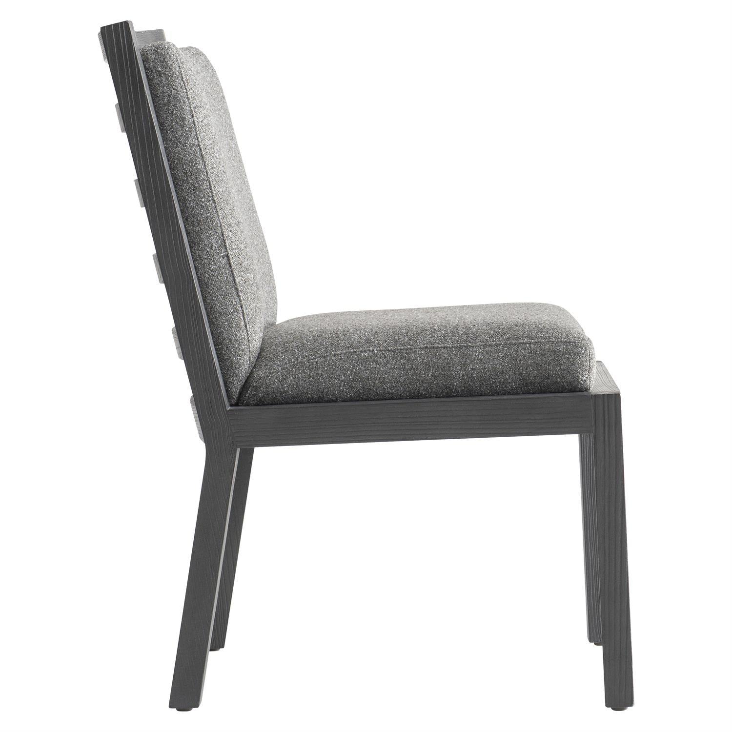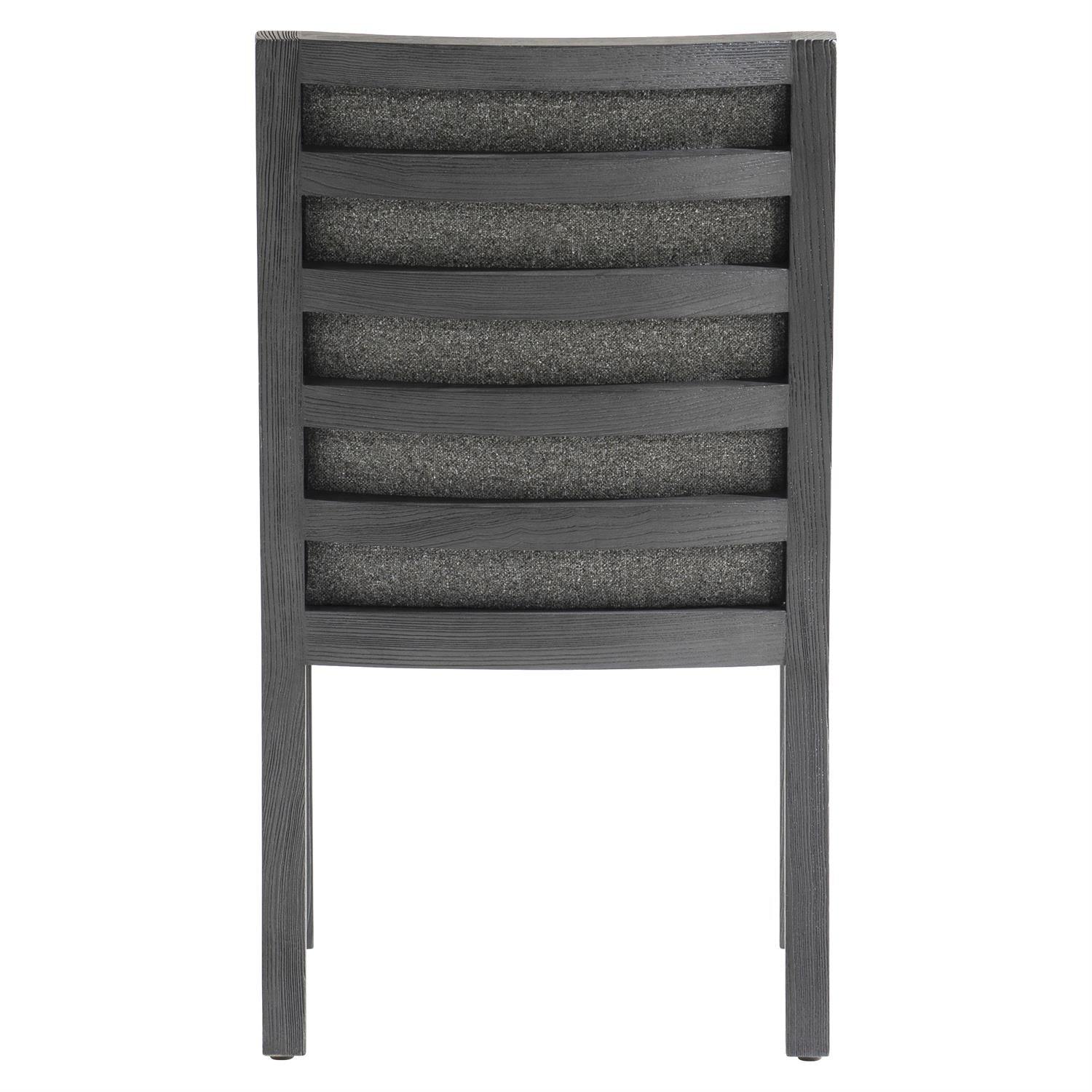 - El respaldo tapizado es visible a través de los listones del respaldo en forma de escalera.
