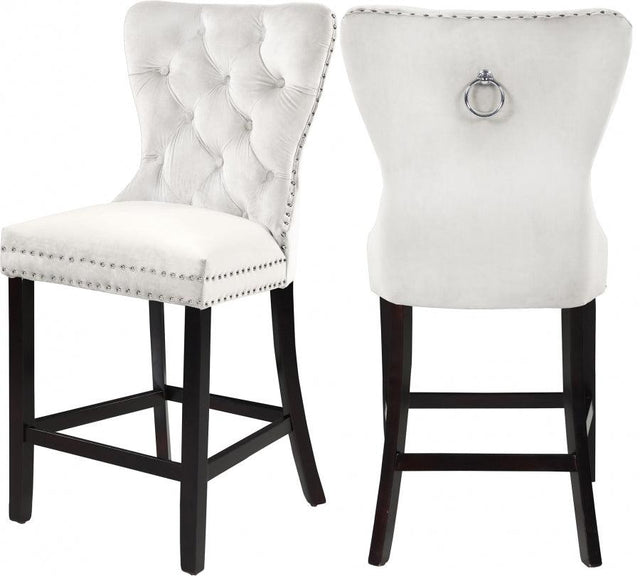 Meridian Furniture - Taburete de bar Nikki de terciopelo color crema (juego de 2) - 741Cream-C