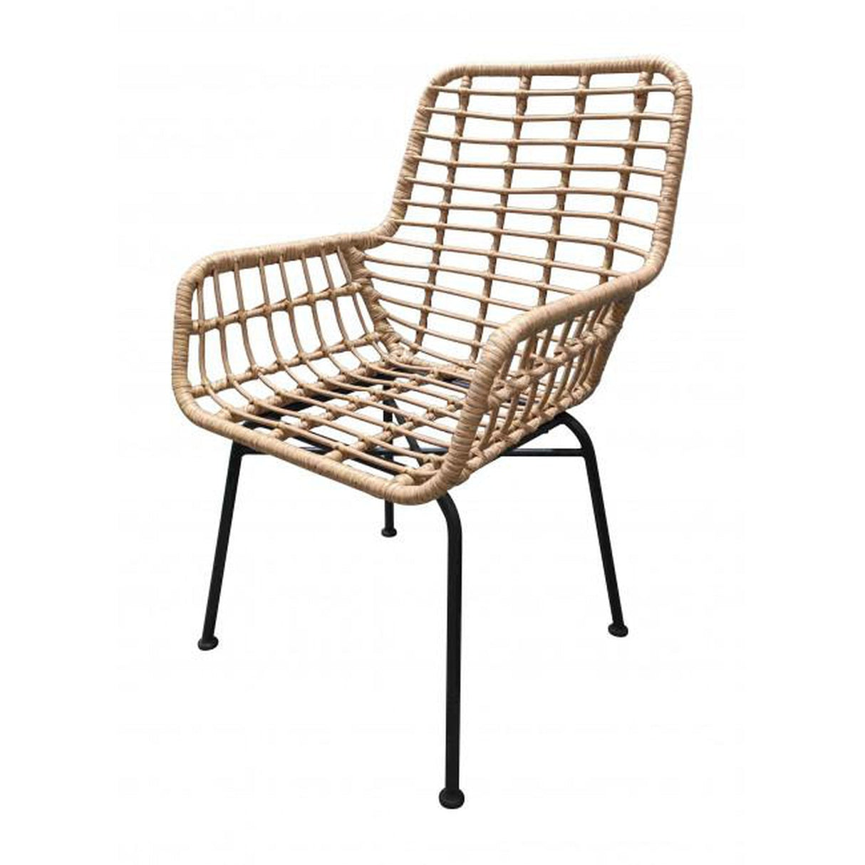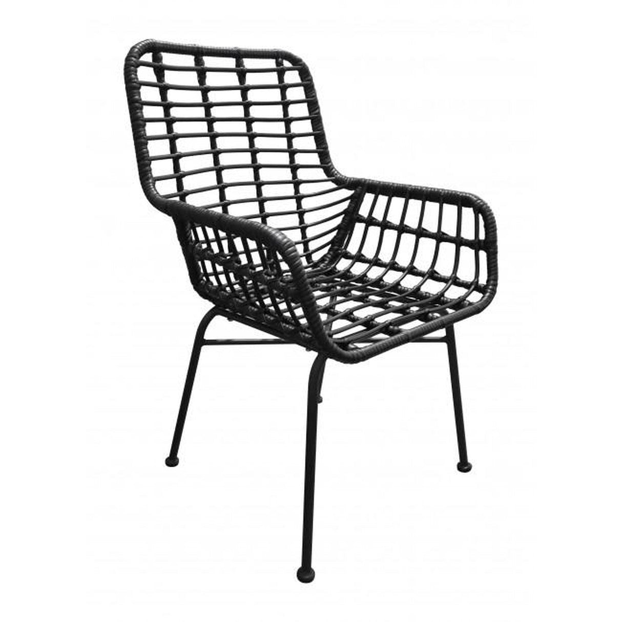 - Esta silla para exterior está hecha de un marco de metal y un tejido sintético de alta calidad para un uso duradero en áreas al aire libre y tiene elegantes reposabrazos.