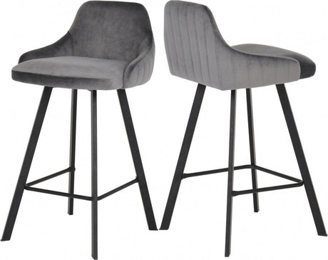 Juego de 2 taburetes altos Stephanie de terciopelo gris - 796Grey-C | Meridian