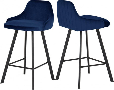 Taburete de bar Nikki de terciopelo azul marino (juego de 2) - 741Navy-C | Meridian