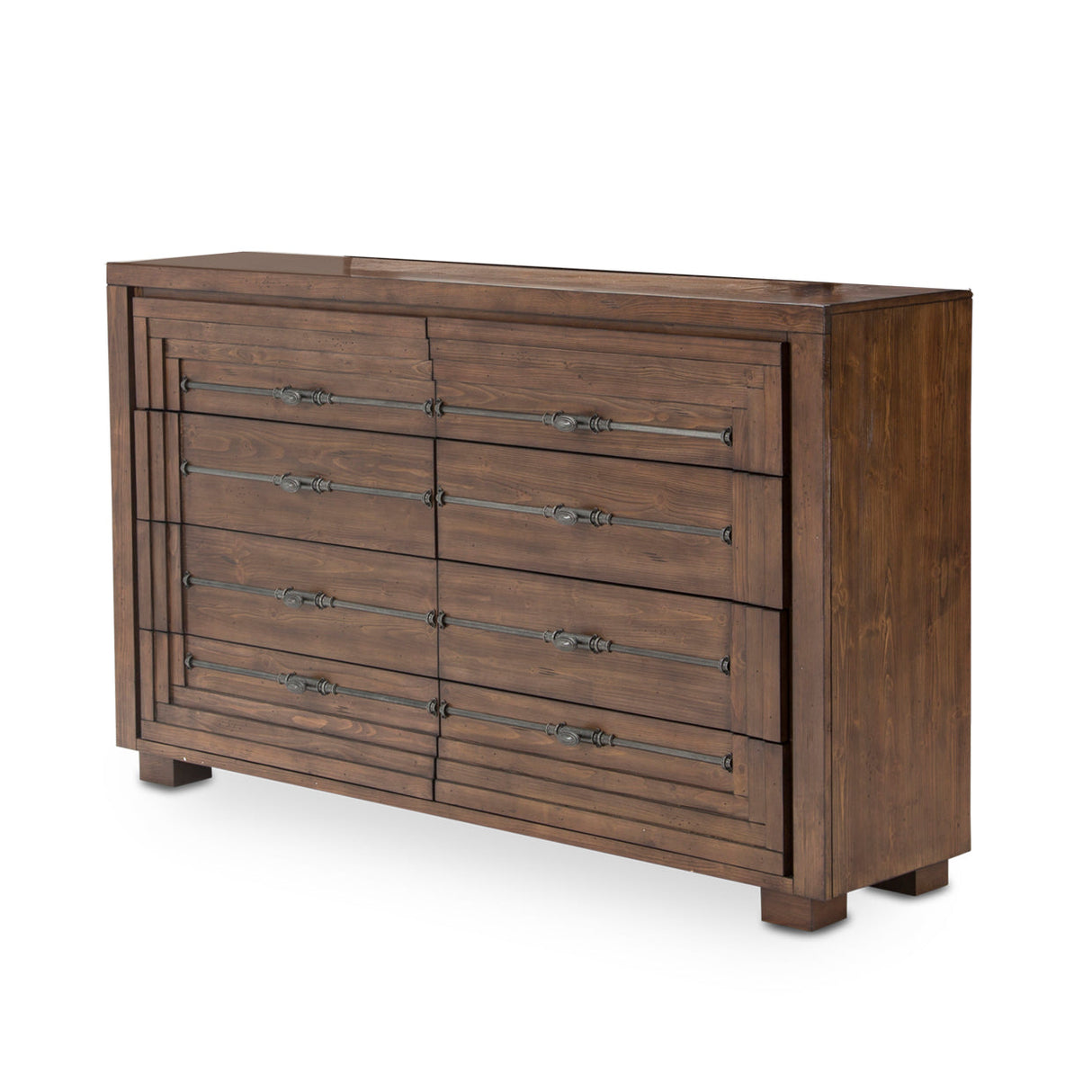 La cómoda Carrollton de 8 cajones de AICO combina a la perfección la calidez vintage con la funcionalidad moderna. Con un acogedor acabado rústico ranchero y fabricada con madera maciza de abeto, esta cómoda ofrece amplio espacio de almacenamiento con detalles refinados y prácticos, perfecta para dormitorios, salas de estar o pasillos donde el diseño y la funcionalidad son fundamentales.