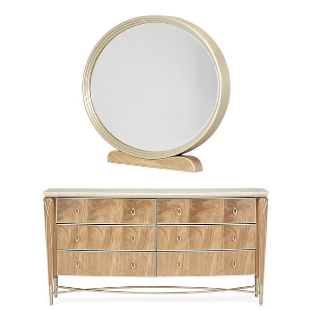 AICO - Cómoda Villa Cherie Caramel con espejo en Chardonnay - N9008050-60-134