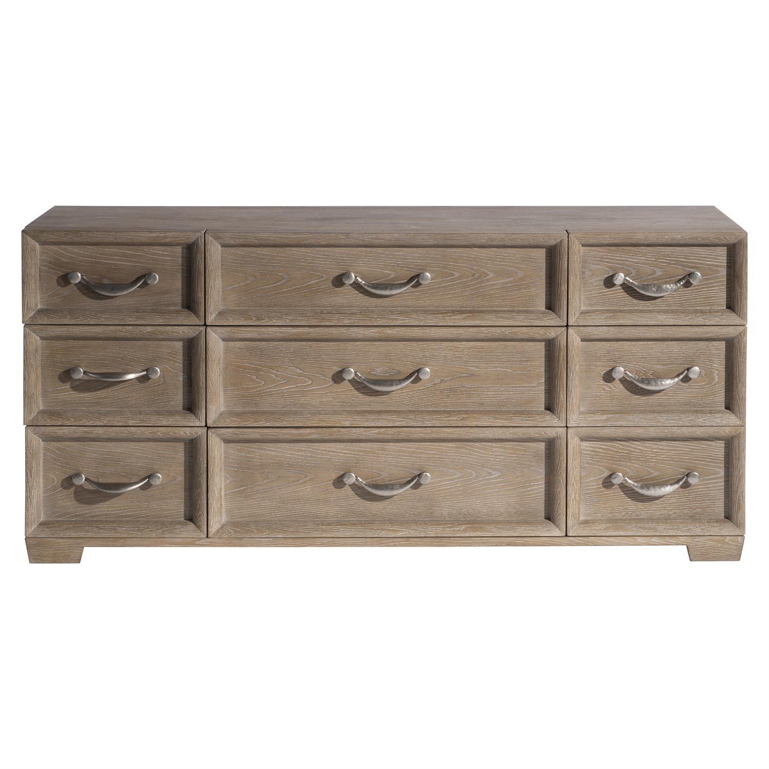 • Nueve cajones de cierre suave están definidos por molduras de resina fundida que rodean herrajes metálicos audaces.