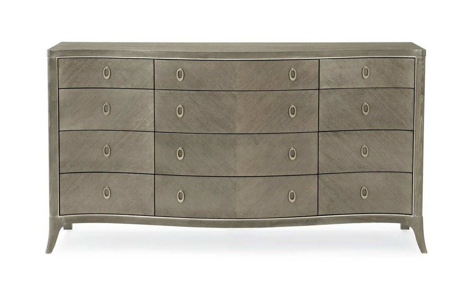 - Los tiradores de metal ovalados contemporáneos personalizados añaden la puntuación perfecta a los 12 cajones de cierre automático con acabado perlado.