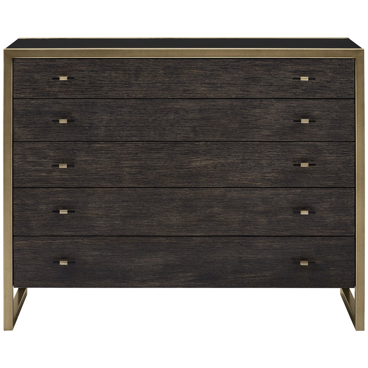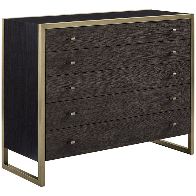 - Acabado: Fresno teñido de negro, roble cerused, metal dorado bronce