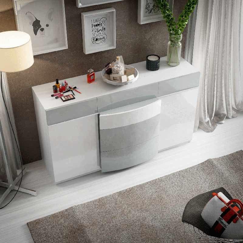 Cómoda doble Ronda Dali 150 en blanco o gris claro brillante: almacenamiento moderno para dormitorio de ESF Furniture