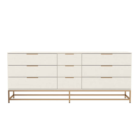 Cómoda Miranda de estilo transicional en madera con acabado dorado | Cosmos