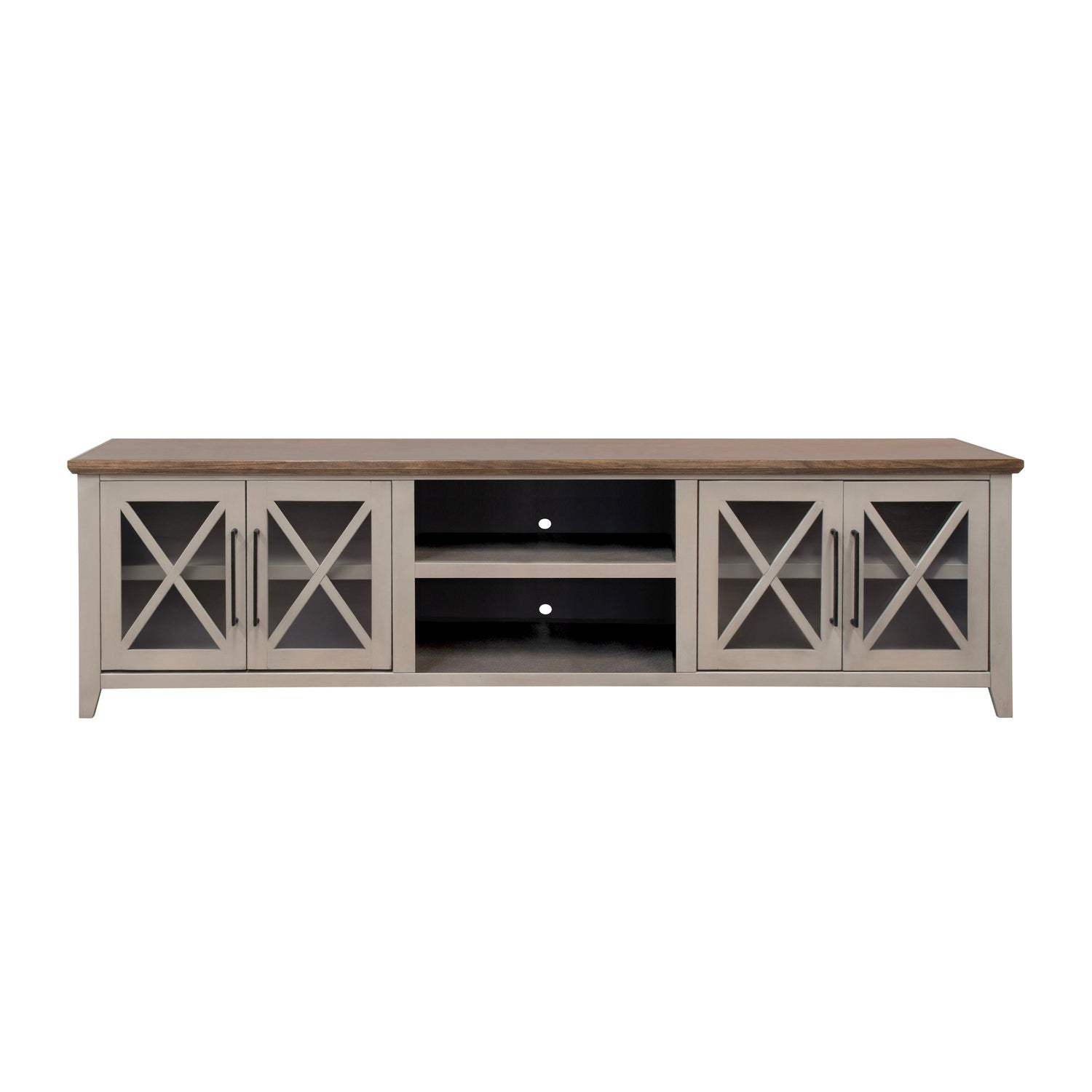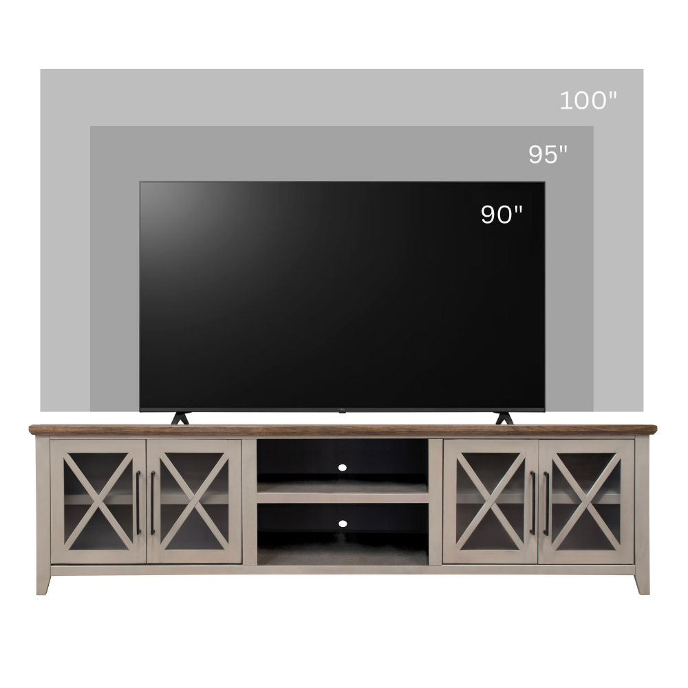 Consola para TV Ithaca de 96 pulgadas, para televisores de hasta 100 pulgadas, no requiere ensamblaje, acabado en arenisca y bourbon