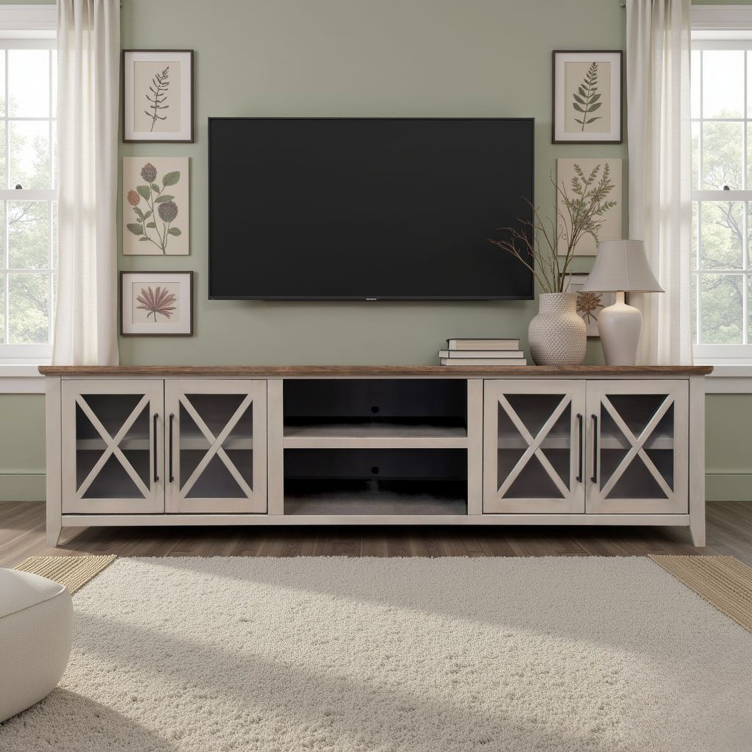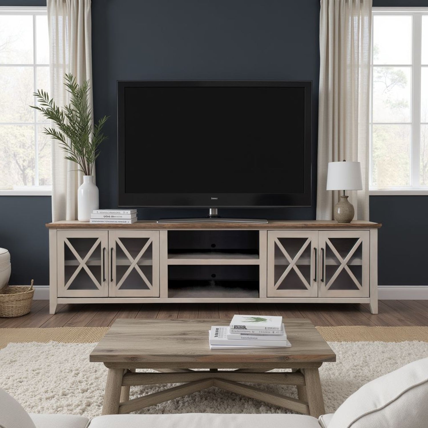 Consola para TV Ithaca de 96 pulgadas, para televisores de hasta 100 pulgadas, no requiere ensamblaje, acabado en arenisca y bourbon - Por defecto está agotado y se enviará tan pronto como vuelva a estar disponible.