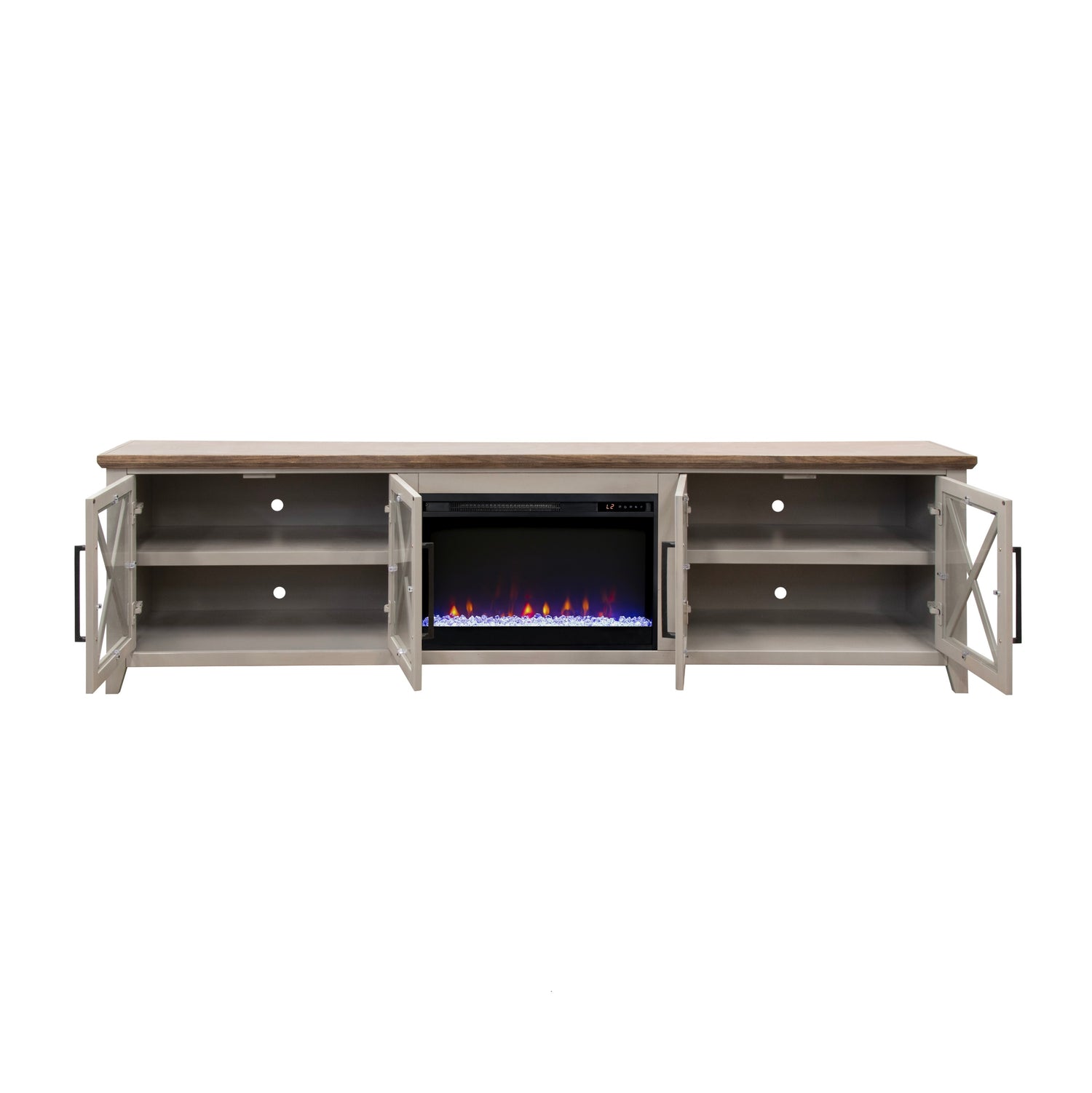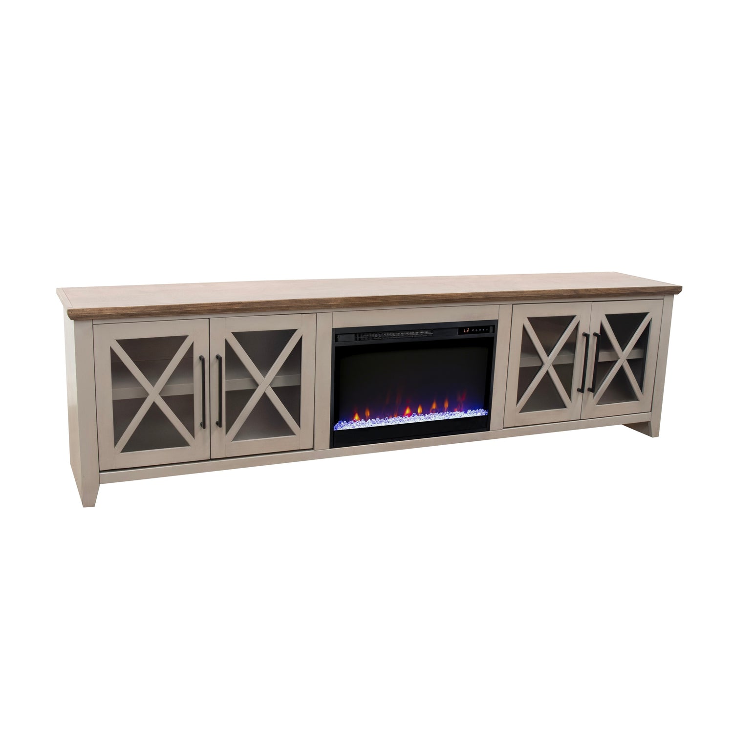 Soporte para TV con chimenea Ithaca de 96 pulgadas, para televisores de hasta 100 pulgadas, requiere un ensamblaje mínimo, acabado en arenisca y bourbon