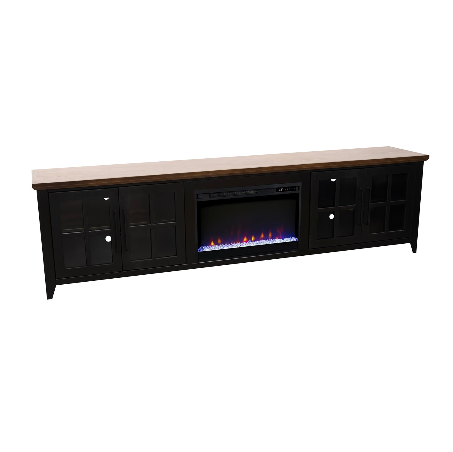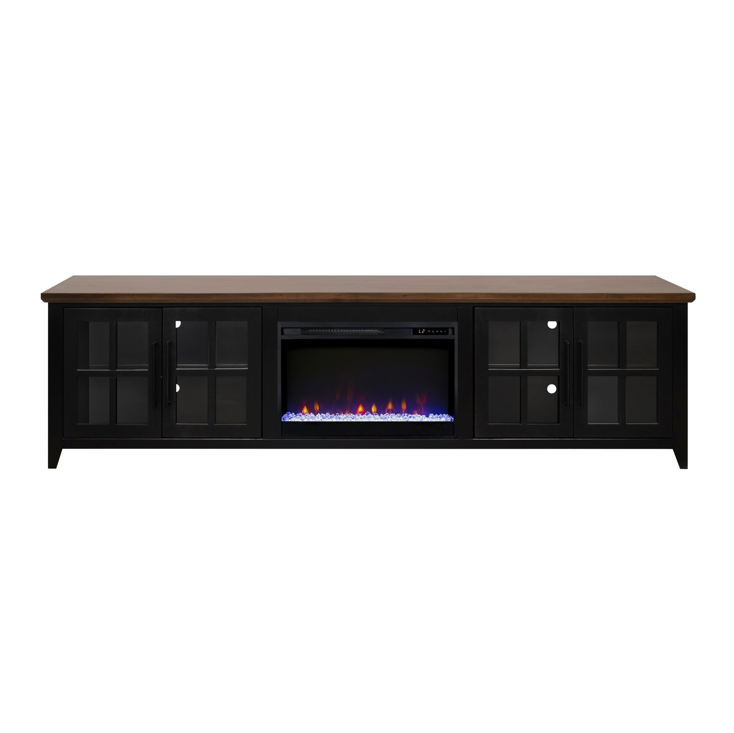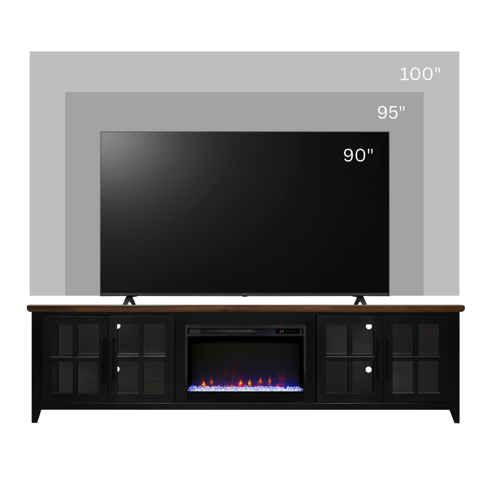 Soporte para TV con chimenea Providence de 96 pulgadas, para televisores de hasta 100 pulgadas, requiere un ensamblaje mínimo, acabado en negro y bourbon