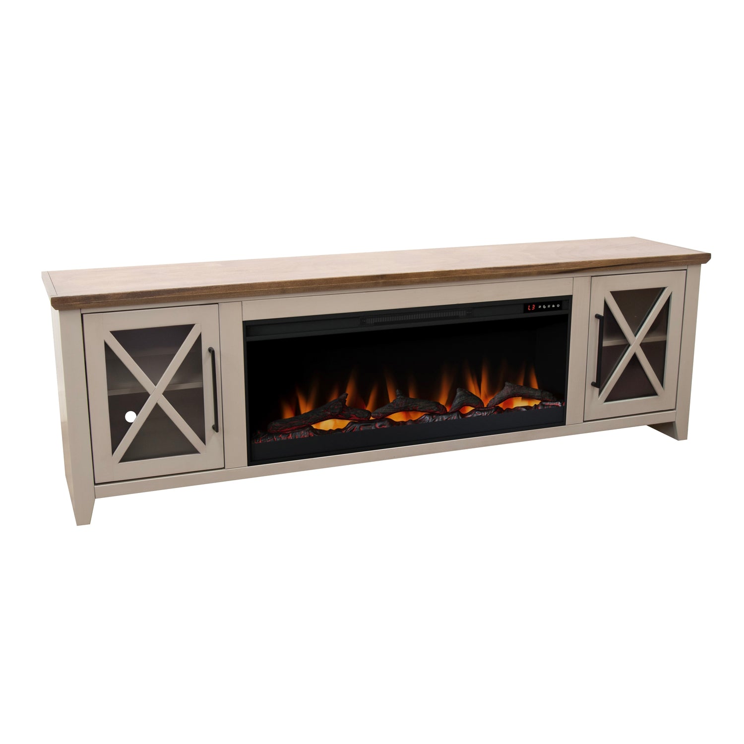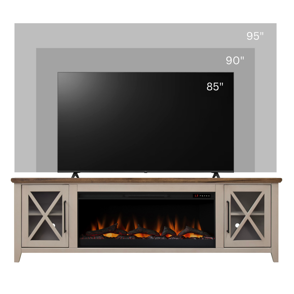 Soporte para TV con chimenea Ithaca de 83 pulgadas, para televisores de hasta 95 pulgadas, requiere un ensamblaje mínimo, acabado en arenisca y bourbon
