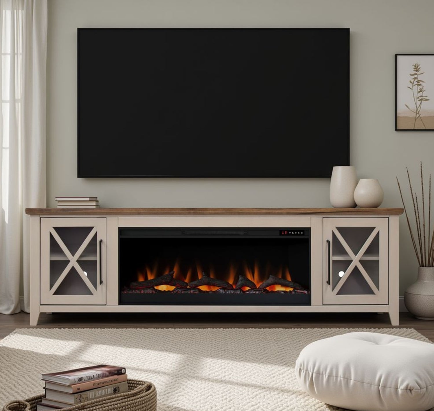Soporte para TV con chimenea Ithaca de 83 pulgadas, para televisores de hasta 95 pulgadas, requiere un ensamblaje mínimo, acabado en arenisca y bourbon - Por defecto está agotado y se enviará tan pronto como vuelva a estar disponible.