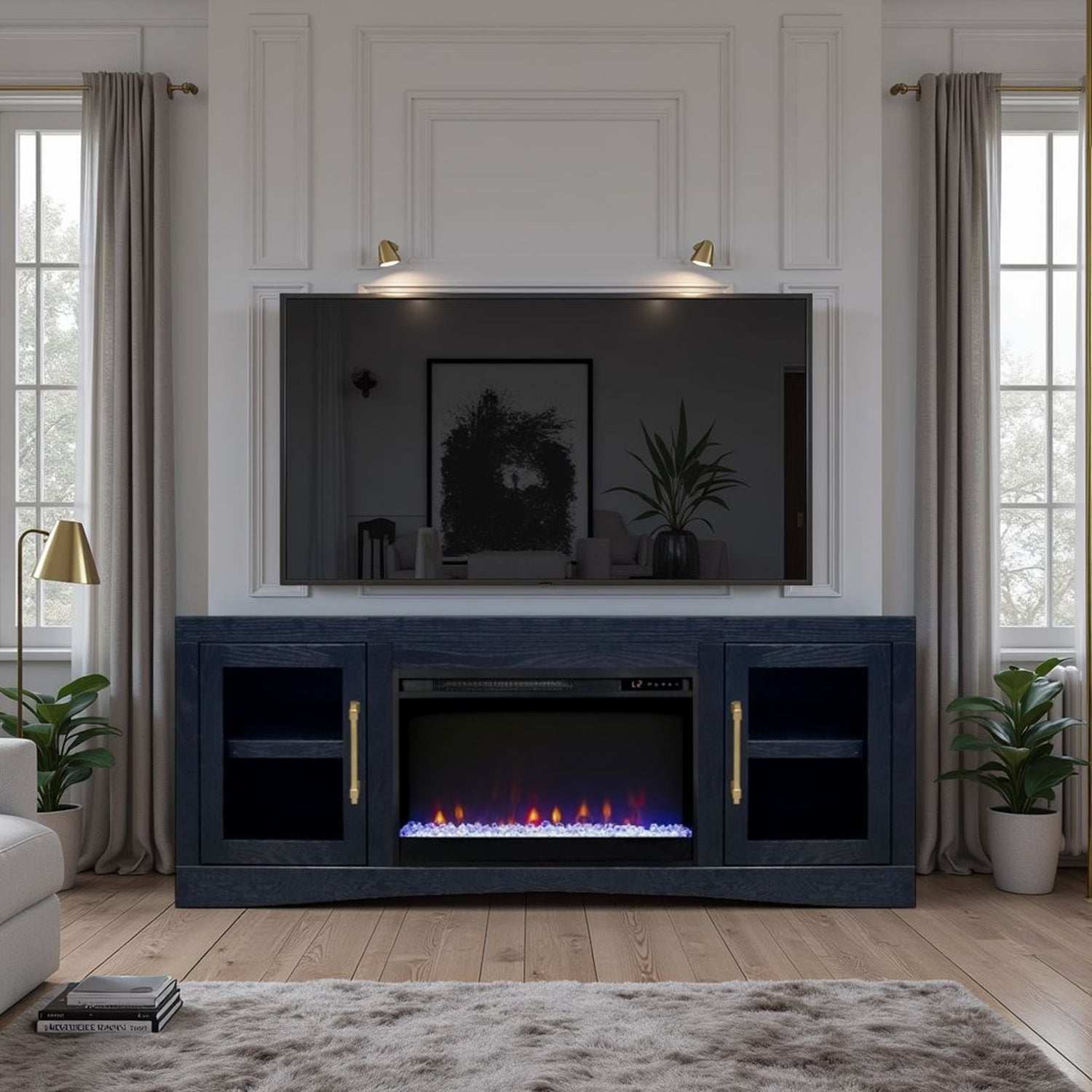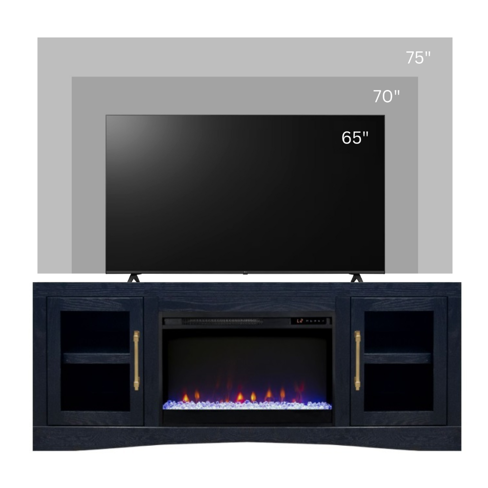 No busque más: el mueble para TV con chimenea Heritage de 65 pulgadas le dará un toque moderno y elegante a su sala de estar. Fabricado con madera maciza de roble y chapas, este centro de entretenimiento con chimenea está disponible en dos acabados, con herrajes dorados y una sutil base arqueada. Esta consola con chimenea admite televisores de hasta 75 pulgadas e incluye dos puertas de vidrio con marco que permiten ver las estanterías interiores y las consolas multimedia. Las aberturas para la gestión de cables en el panel trasero mantendrán todos los cables organizados y ocultos. El inserto para chimenea eléctrica de 26 pulgadas incluye un control remoto y múltiples configuraciones que permiten calentar hasta 400 pies cuadrados. Cuatro tornillos (incluidos) facilitan y agilizan la fijación del inserto a la consola.