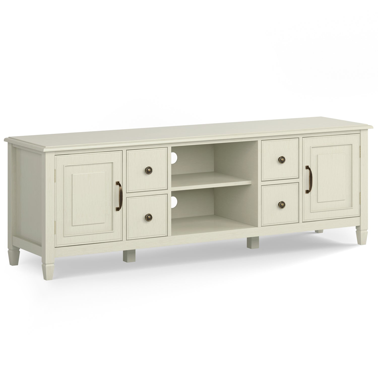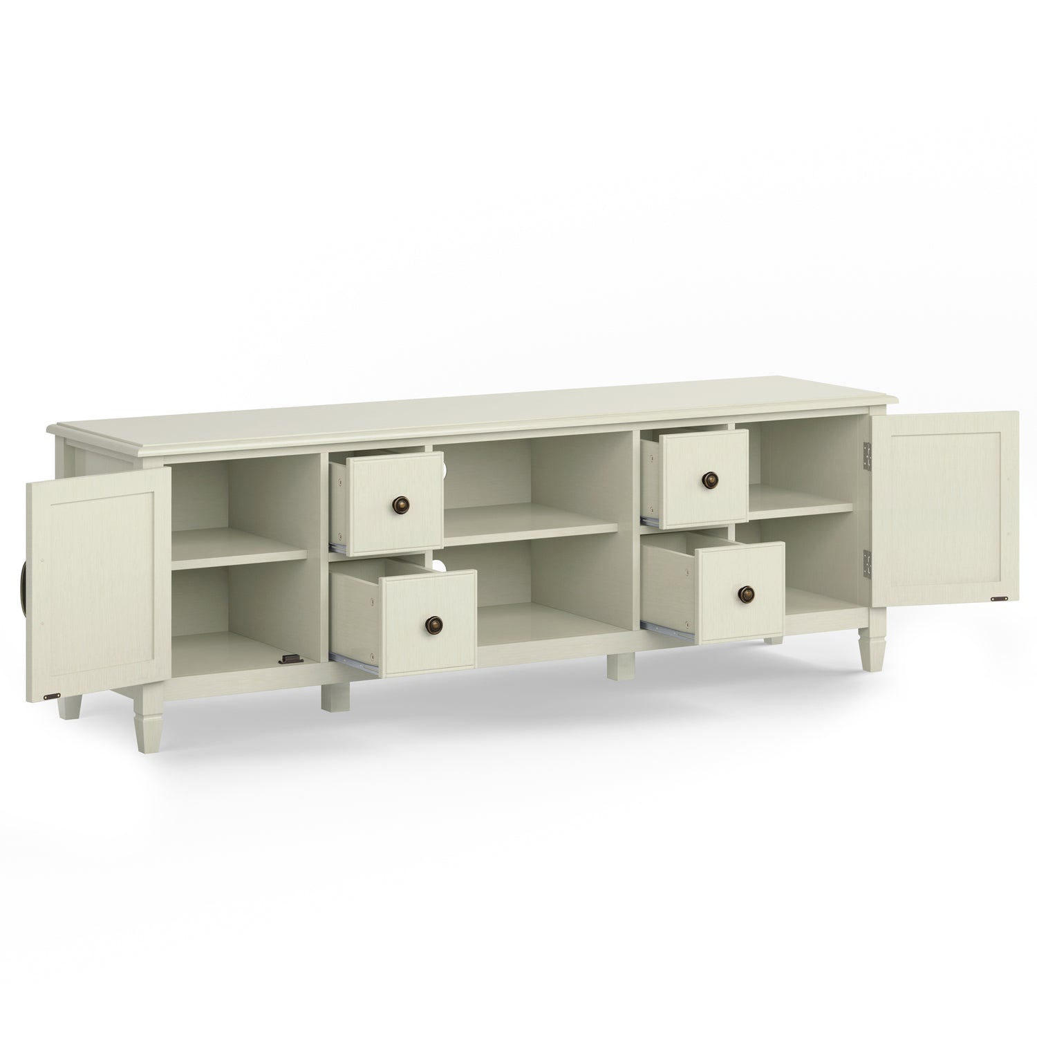 Mueble para TV Connaught de madera maciza de 72 pulgadas de ancho en blanco antiguo. Para televisores de hasta 80 pulgadas.