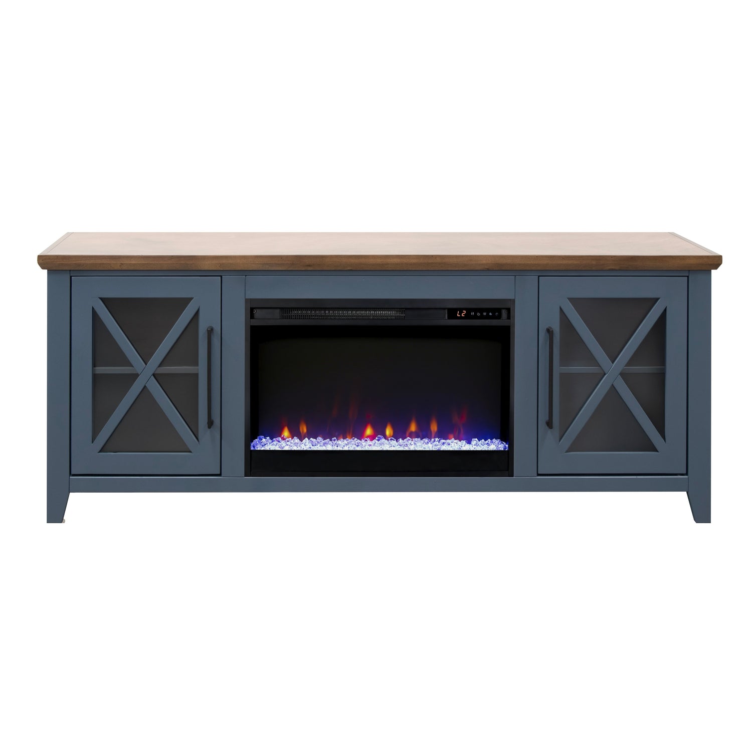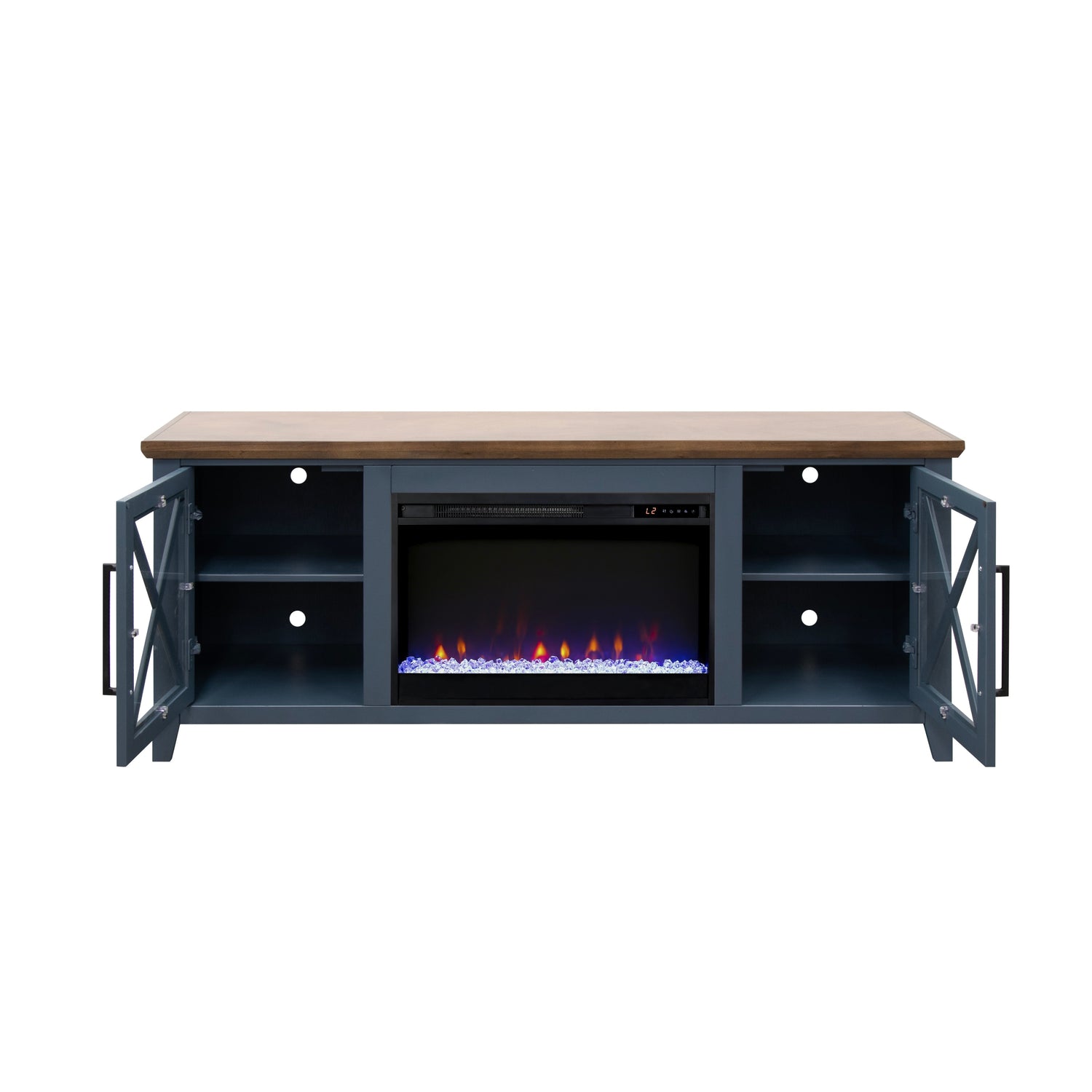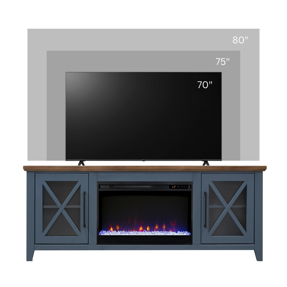 Soporte para TV con chimenea Ithaca de 66 pulgadas, para televisores de hasta 80 pulgadas, requiere un ensamblaje mínimo, acabado azul y bourbon