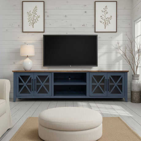 - Las opciones incluyen consolas anchas, unidades altas y paredes de entretenimiento completas.
