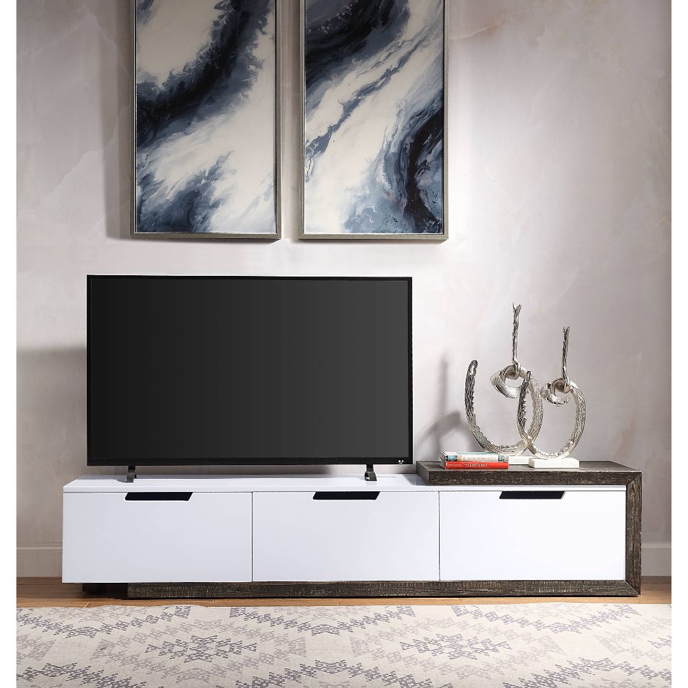 Mueble de TV Orion 91680 blanco brillante con acabado en roble rústico | Acme