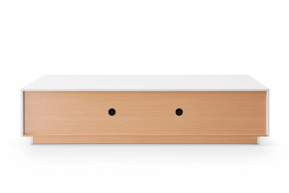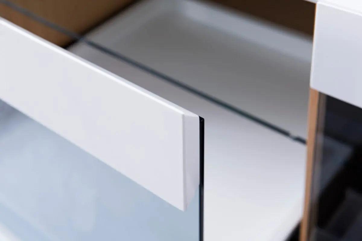 El mueble de TV pequeño Modrest Frost Modern White presenta un diseño versátil y atractivo con un delicado acabado blanco brillante. Cuenta con estantes interiores de vidrio de dos niveles y dos puertas abatibles con vidrio templado morado, fácil de usar, en la sección central. En ambos extremos se encuentran dos cajones extraíbles con vidrio templado azul, fácil de usar, también con control remoto. Todos los cajones interiores están revestidos con un elegante tablero de roble natural. Para evitar el desorden de cables, cuenta con dos orificios para cables eléctricos. Este mueble de TV moderno y funcional no requiere ensamblaje y mide 79" (ancho) x 23" (profundidad) x 18".