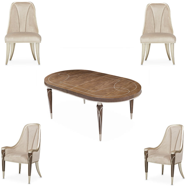 Juego de comedor ovalado Villa Cherie de 5 piezas – Lujo en cálido tono avellana