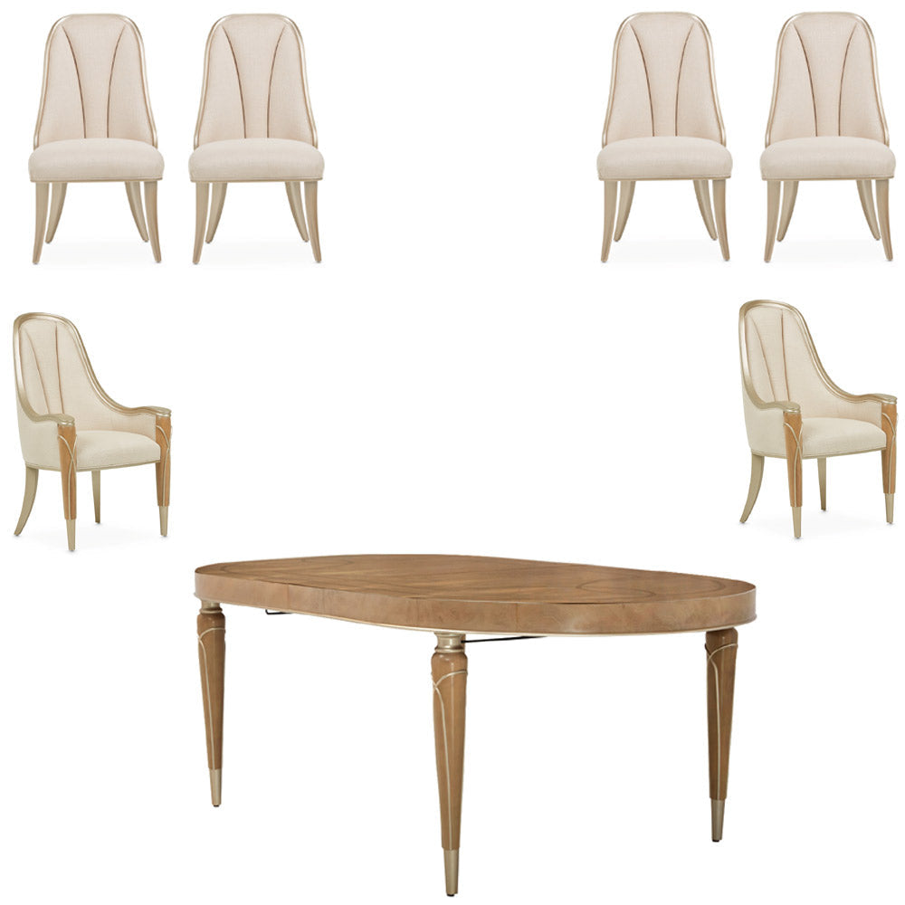 Juego de comedor ovalado Villa Cherie Caramel de 7 piezas Chardonnay — Muebles AICO