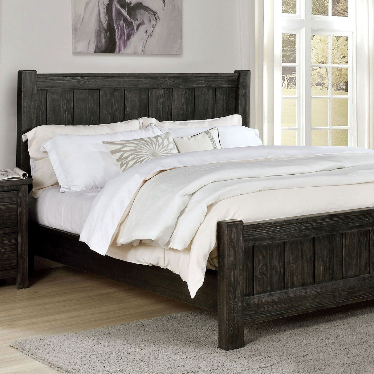 ¡Lleva el encanto rústico de este juego de dormitorio a casa! De diseño sencillo pero con mucho encanto, esta colección de estilo granero se adaptará a cualquier hogar. La cama presenta tablones texturizados dispuestos verticalmente, mientras que los muebles de estilo granero cuentan con tiradores redondos en los cajones. El cargador USB integrado en la mesita de noche también ofrece comodidad.