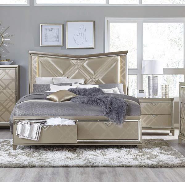 Juego de dormitorio Bijou de 3 piezas con plataforma y almacenaje, tamaño king, en color champán 1522K-1Wfek-3Set | Homelegance