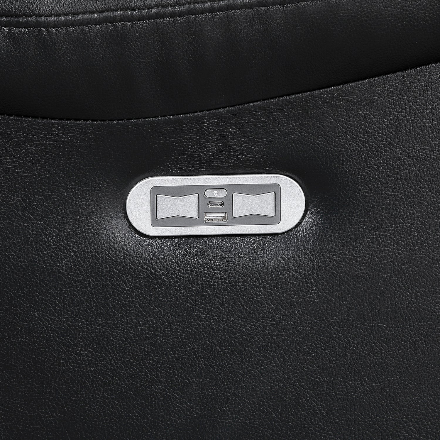 Sofá reclinable doble eléctrico Huron, tapizado en piel sintética negra | Homelegance