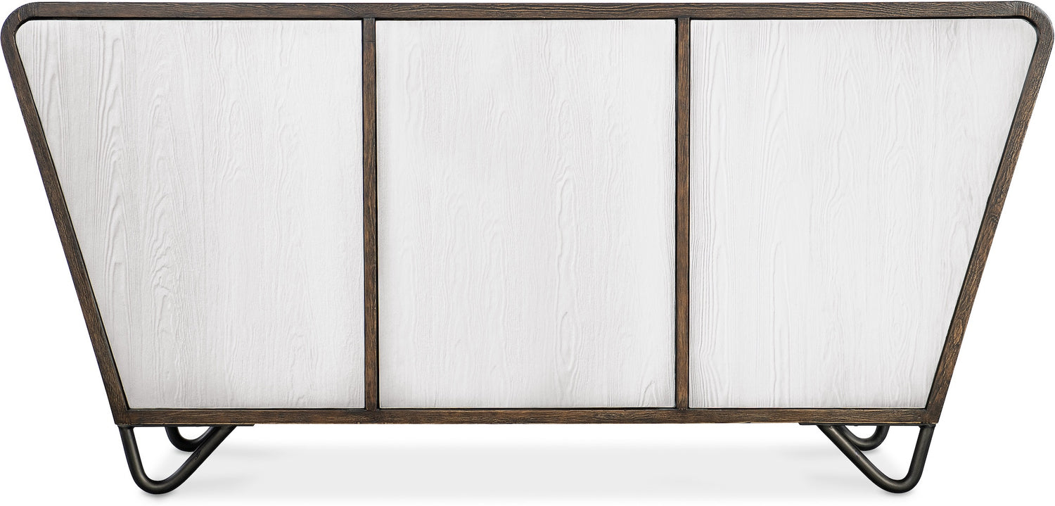 El aparador Melange Terra de Hooker Furniture combina una geometría escultural con un diseño moderno. Con una audaz silueta de cuadrángulo invertido, un acabado bitono de chapas de pino oscuro y puertas blancas, y comodidades adaptadas a los dispositivos multimedia, es un punto focal impactante para cualquier sala de estar o comedor de lujo.