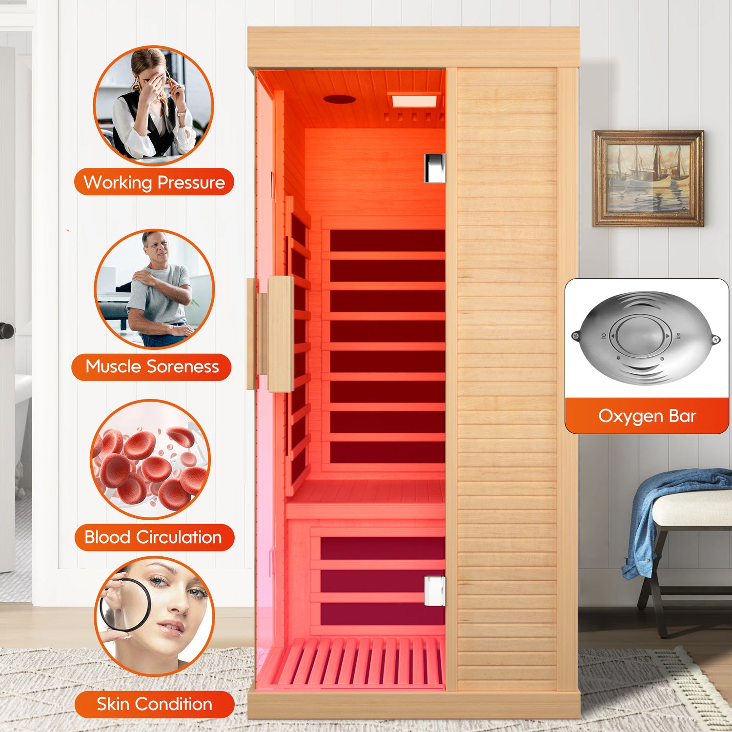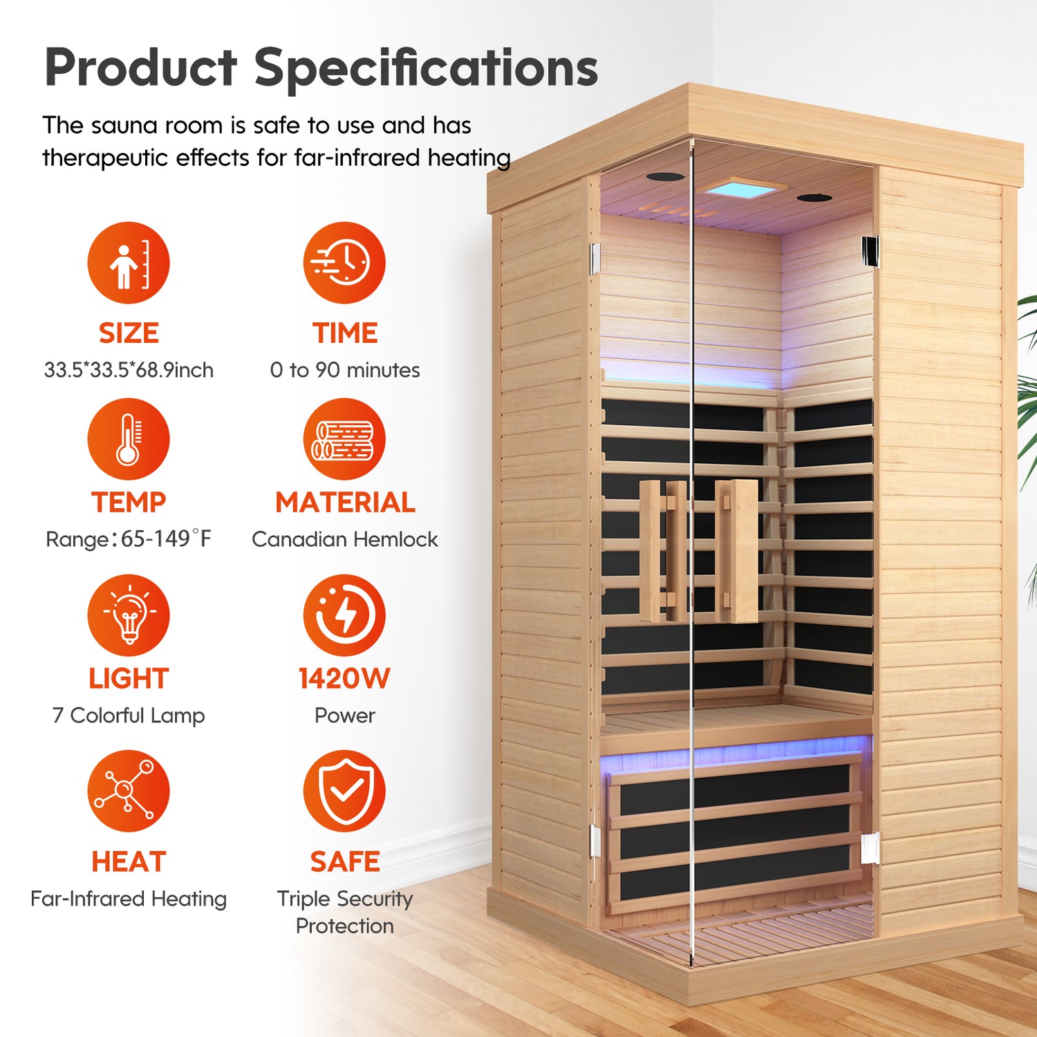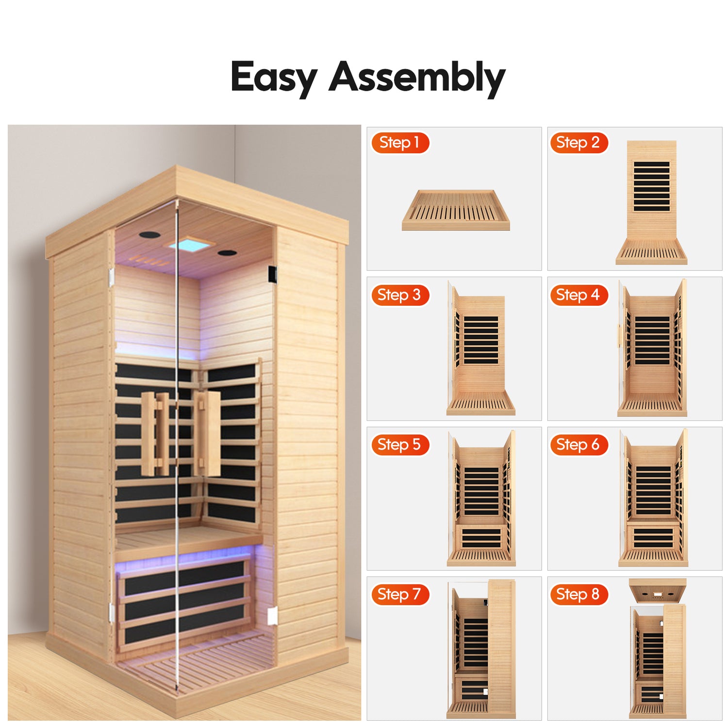 - Sauna de madera - Sauna residencial Kanlanth Canadian Hemlock. Diseño modular, machihembrado, montaje rápido y fácil mantenimiento. En caso de fuga, el dispositivo de protección corta automáticamente el suministro eléctrico durante el uso.