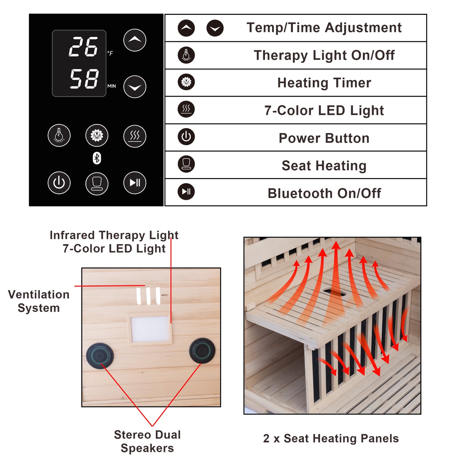 - CARACTERÍSTICAS DE COMODIDAD: Altavoces Bluetooth incorporados, control de calefacción del asiento dedicado y ventilación del techo para una mayor comodidad durante su sesión de sauna para una persona.