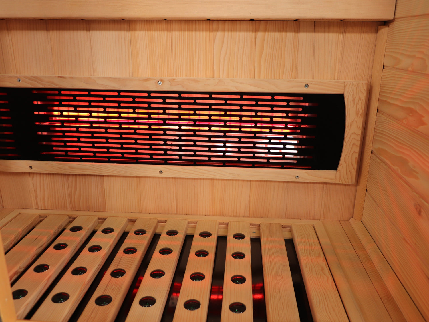 - Debido a que los rayos infrarrojos penetran en el cuerpo a través de la conversión, se produce un efecto de calentamiento profundo tanto en los tejidos musculares como en los órganos internos sin suponer una carga excesiva para el corazón.