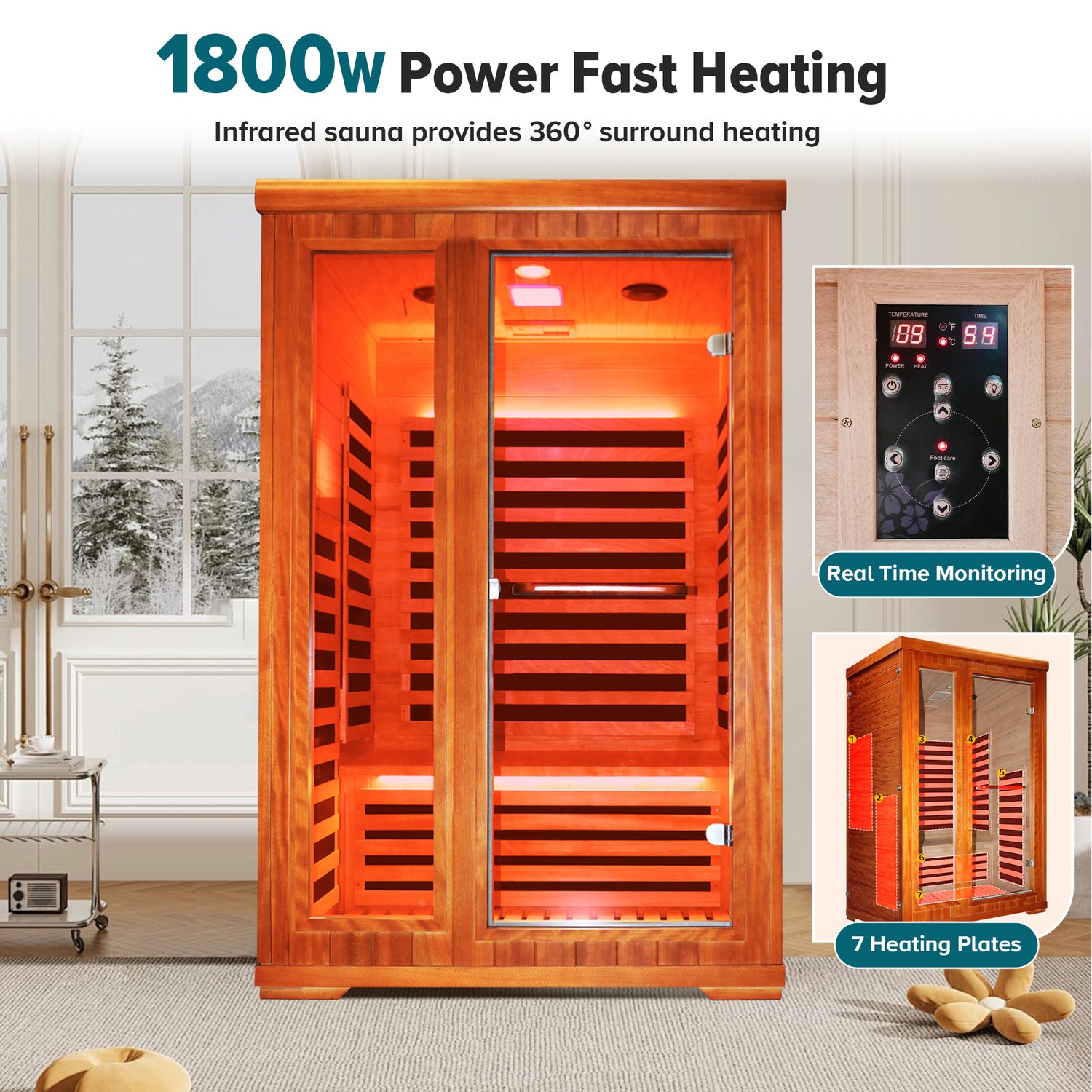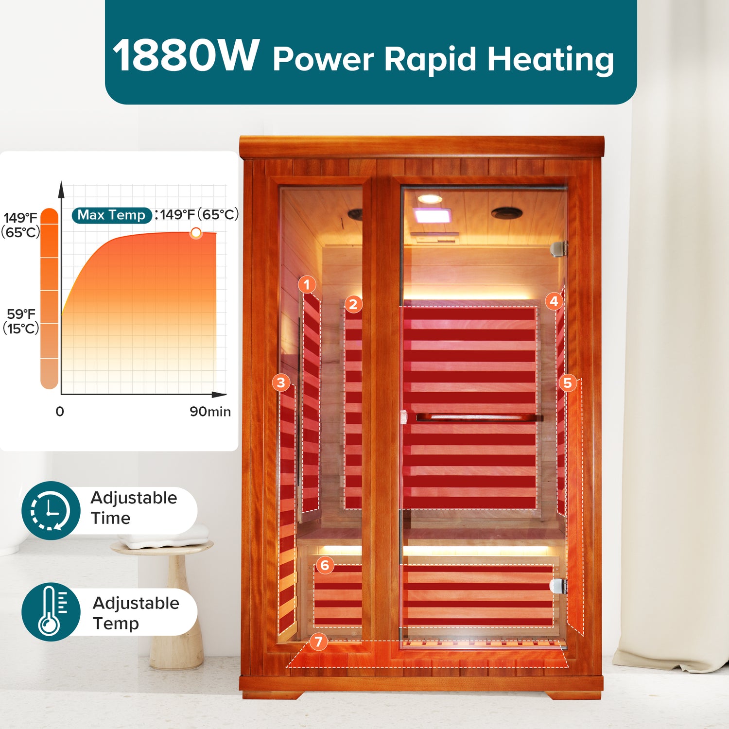 • Tamaño del producto: 120 cm * 105 cm * 190 cmPotencia: 1880wNúmero de placas calefactoras: 7 piezas