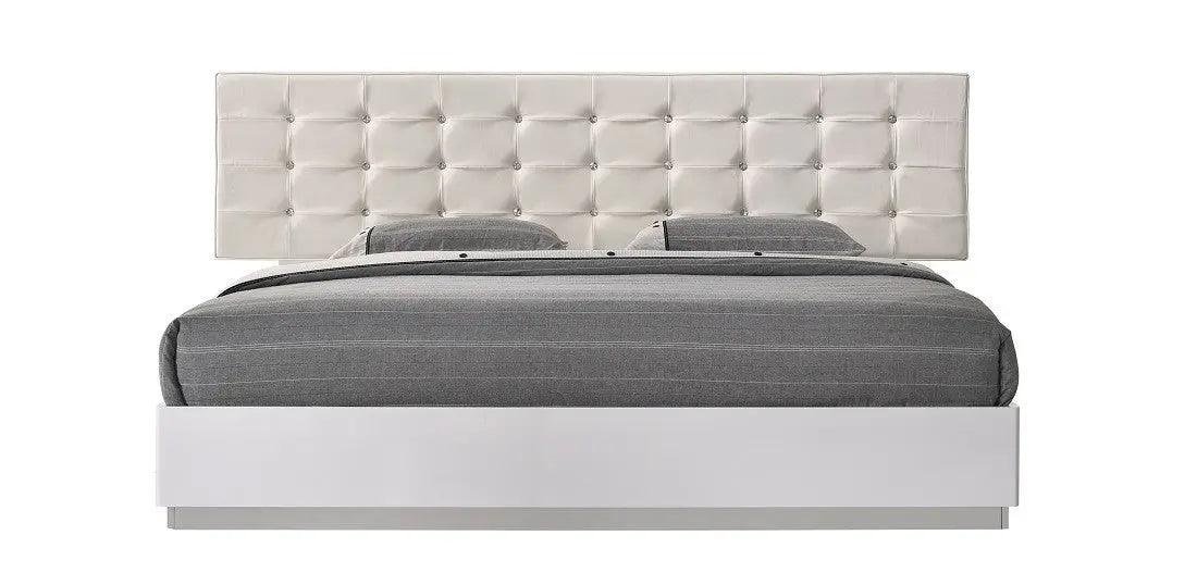 El dormitorio Verona de J&M Furniture ofrece una nueva perspectiva para el dormitorio moderno. Con muebles con exclusivas superficies 3D, este conjunto con acabado lacado en blanco realzará el aspecto de dormitorios de diferentes tamaños y colores. El cabecero de polipiel aporta elegancia y un toque clásico al conjunto, con hermosos detalles de pedrería. Tanto si elige el conjunto completo, su cama individual con plataforma o cualquiera de los muebles, puede estar seguro de que estos muebles de calidad están diseñados para durar. Nuestros muebles cuentan con guías de extensión completa. La cómoda tiene 6 cajones (no 3 como se muestra en la imagen). No incluye colchón ni decoración.