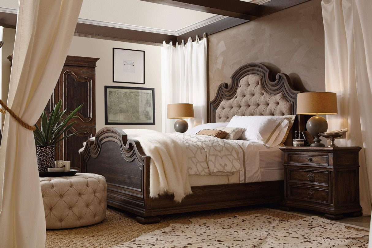 Dormitorio Fair Oaks King con cama tapizada | Hooker está agotado y se enviará tan pronto como vuelva a estar disponible.
