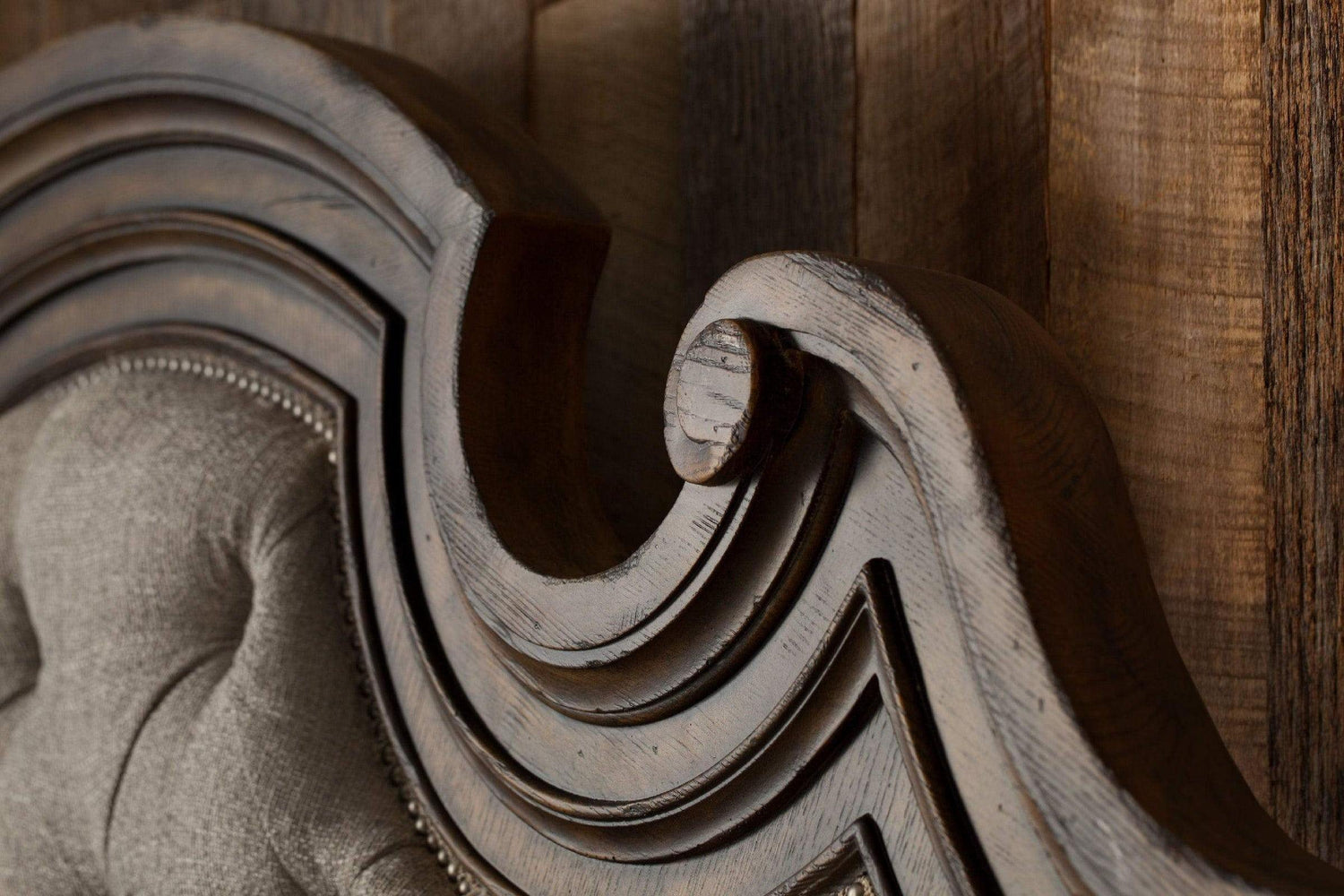 Fabricada con chapa de roble blanco rústico cortado a plano, la cama tapizada Fair Oaks King se somete a un meticuloso proceso donde la madera se agrieta antes de aplicar el acabado. Esta técnica única garantiza que la cama luzca como nueva con el paso del tiempo, lo que realza su aspecto y tacto auténticos.