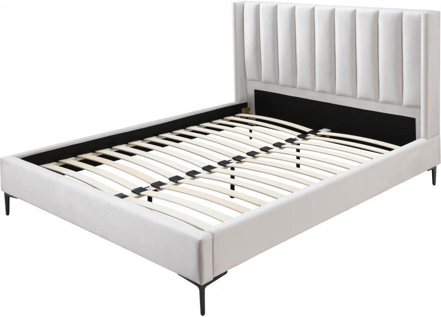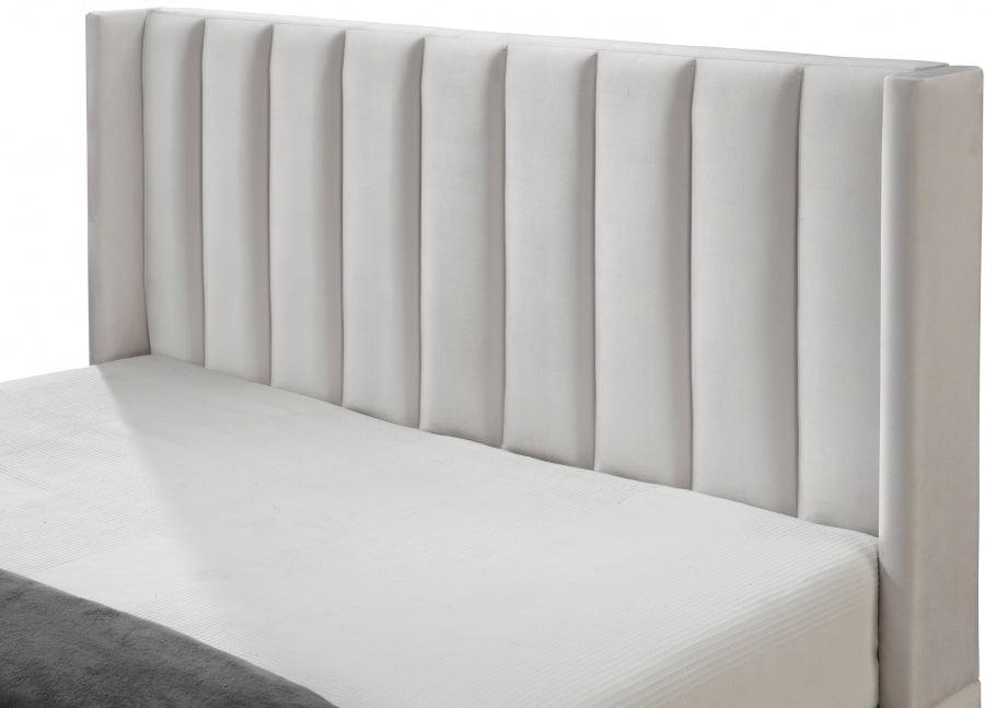 Meridian Furniture - Cama King Nadia de terciopelo color crema - NadiaCream-K