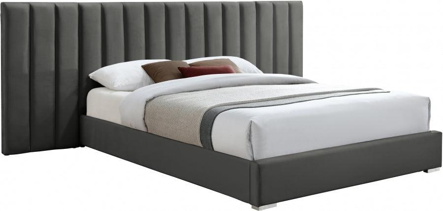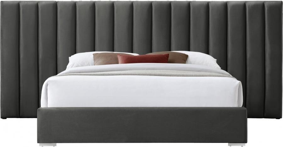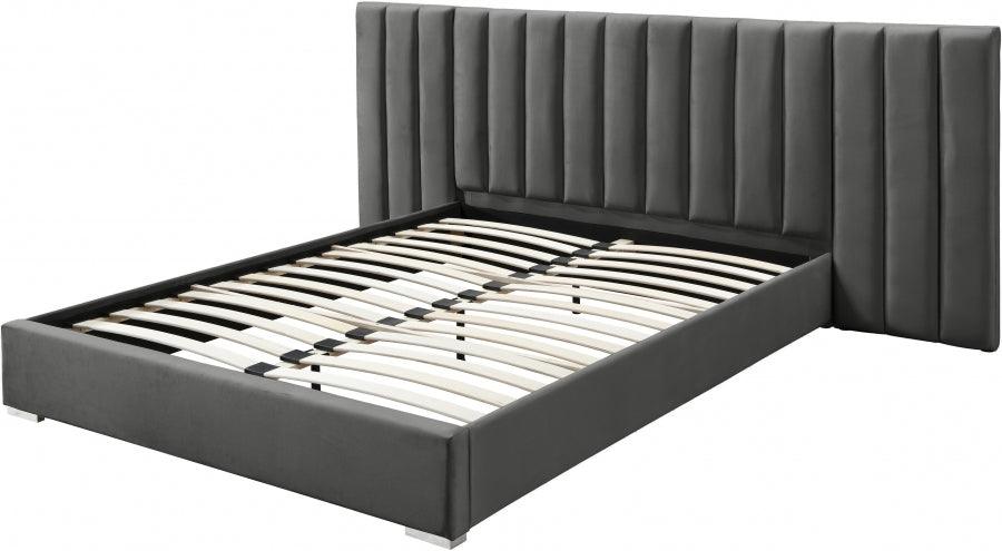 Meridian Furniture - Cama King Pablo de terciopelo gris - PabloGrey-K