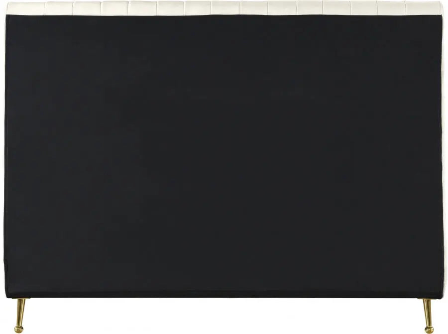 Sumérgete en el lujo con esta cama de terciopelo Zara. Esta hermosa cama king size cuenta con un acolchado excepcional en la cabecera y el pie de cama para una apariencia de lujo. El diseño lujoso se ve realzado por la rica tapicería de terciopelo color crema y su capitoné con canales, que además mantiene el acolchado interior alto, completo y cómodo mientras te relajas. La cama tiene patas doradas que le dan un toque majestuoso y, al incluir listones, no necesita somier.