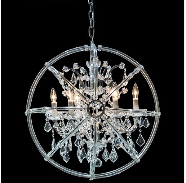 Lámpara de araña Pena de 6 luces en vidrio transparente y acabado cromado – Muebles Aico