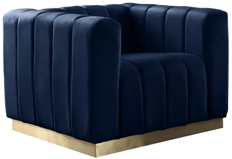 Meridian Furniture - Silla Marlon de terciopelo azul marino - 603Navy-C