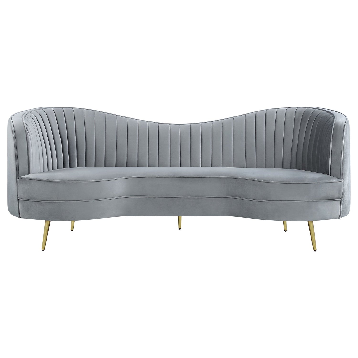Conjunto de sala de estar tapizado Sophia de 2 piezas con respaldo camel en gris y dorado | Coaster