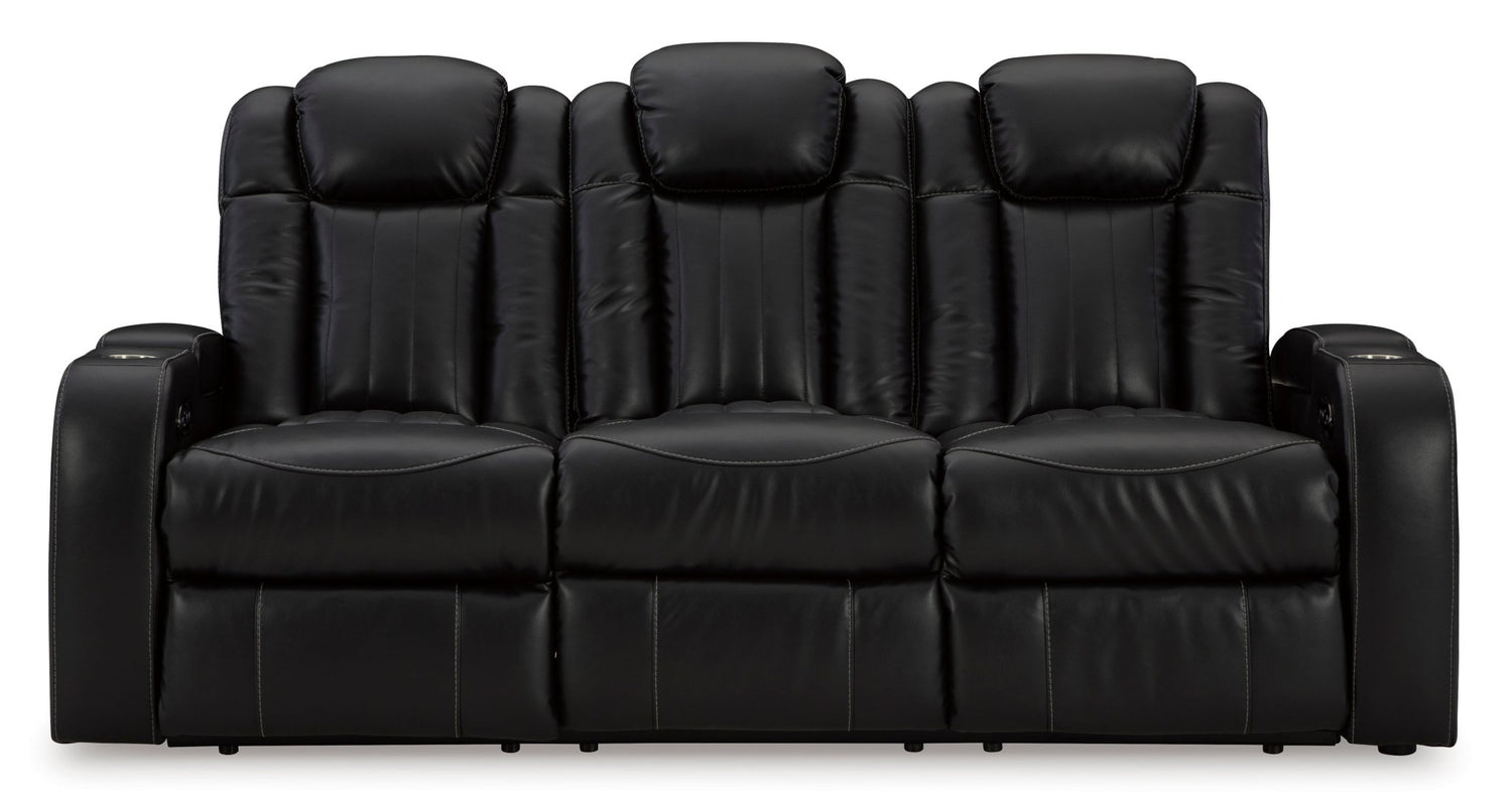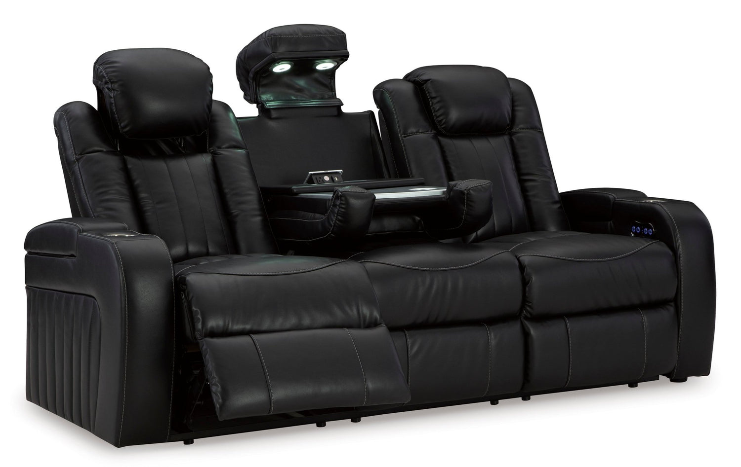 Sofá reclinable eléctrico Caveman Den, piel sintética color medianoche – Ashley Furniture