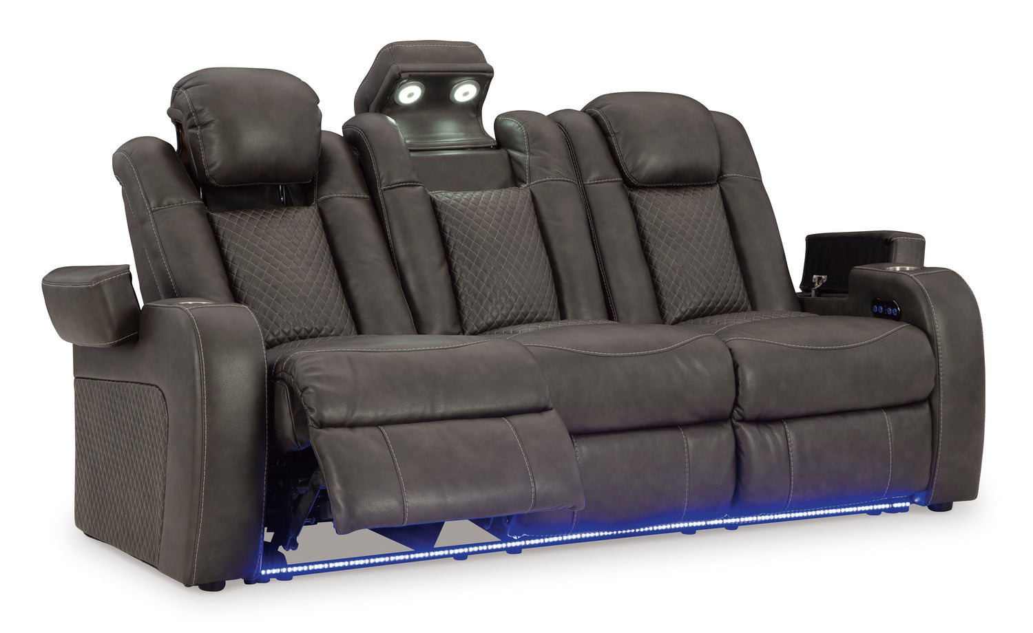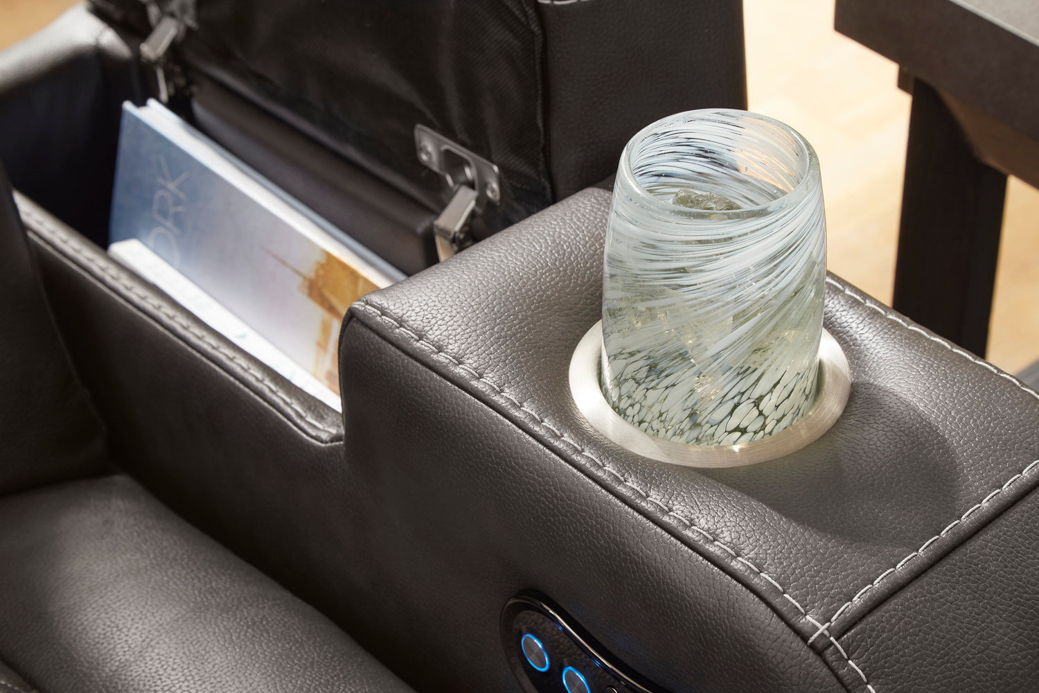 El sofá reclinable eléctrico Fyne-Dyme en piel sintética color marrón oscuro de Ashley Furniture ofrece la combinación perfecta de características de estilo teatro y diseño moderno . Con iluminación LED, almacenamiento oculto, carga inalámbrica y reposacabezas eléctricos , está diseñado para realzar tu espacio vital con comodidad e innovación.