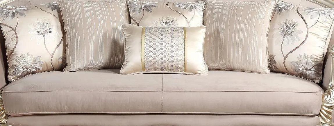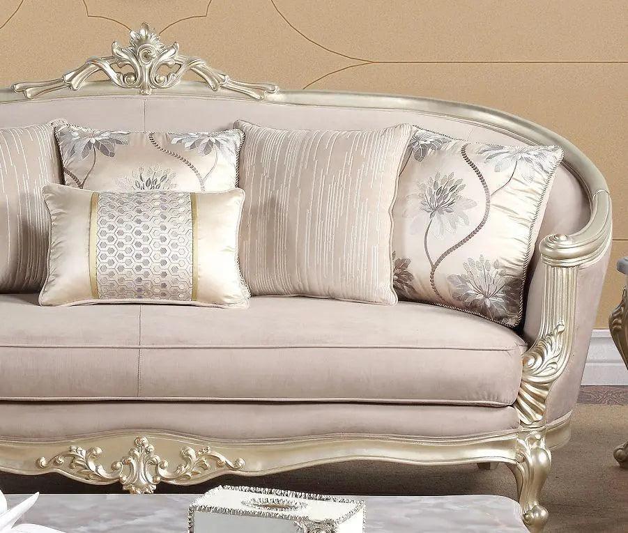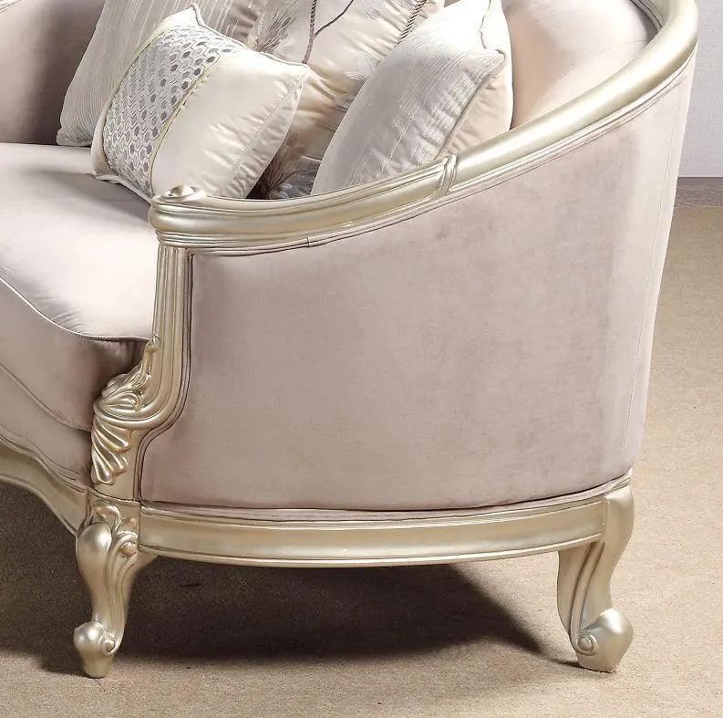 Sofá y loveseat tradicionales Elanor con acabado en madera color champán | Cosmos