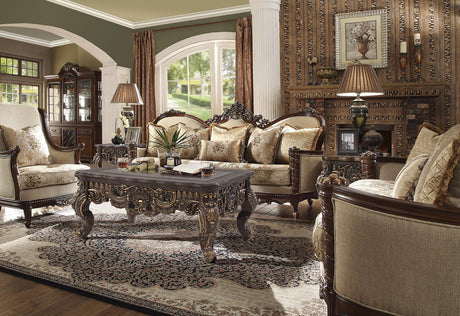 Juego de sala tradicional Hd-8925 con acabado champán y oro antiguo | Diseño hogareño